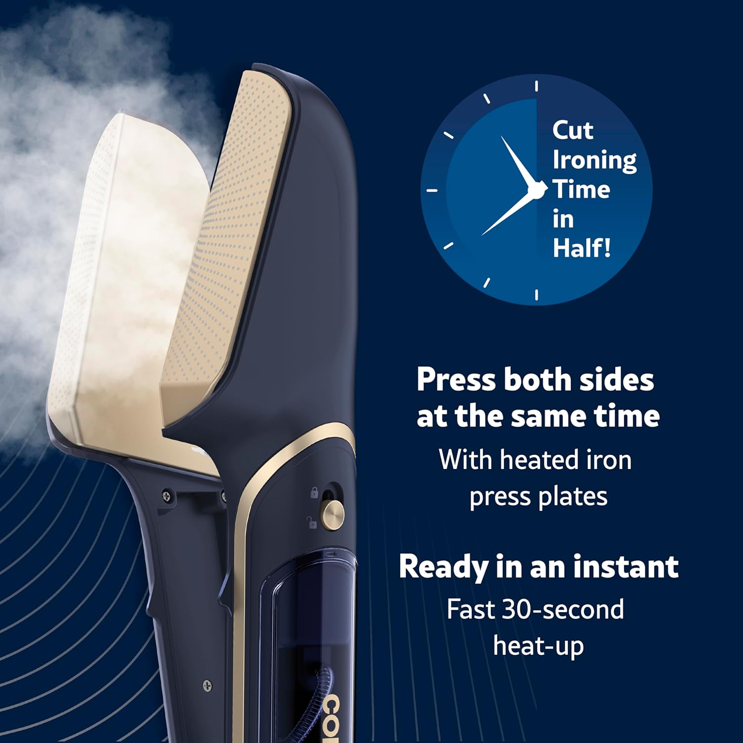 STEAMING VERSATILITY: New cutting-edge 360° steam-and-press technology for complete versatility, allowing you to cut ironing time in half by pressing both sides of your garment at the same time.