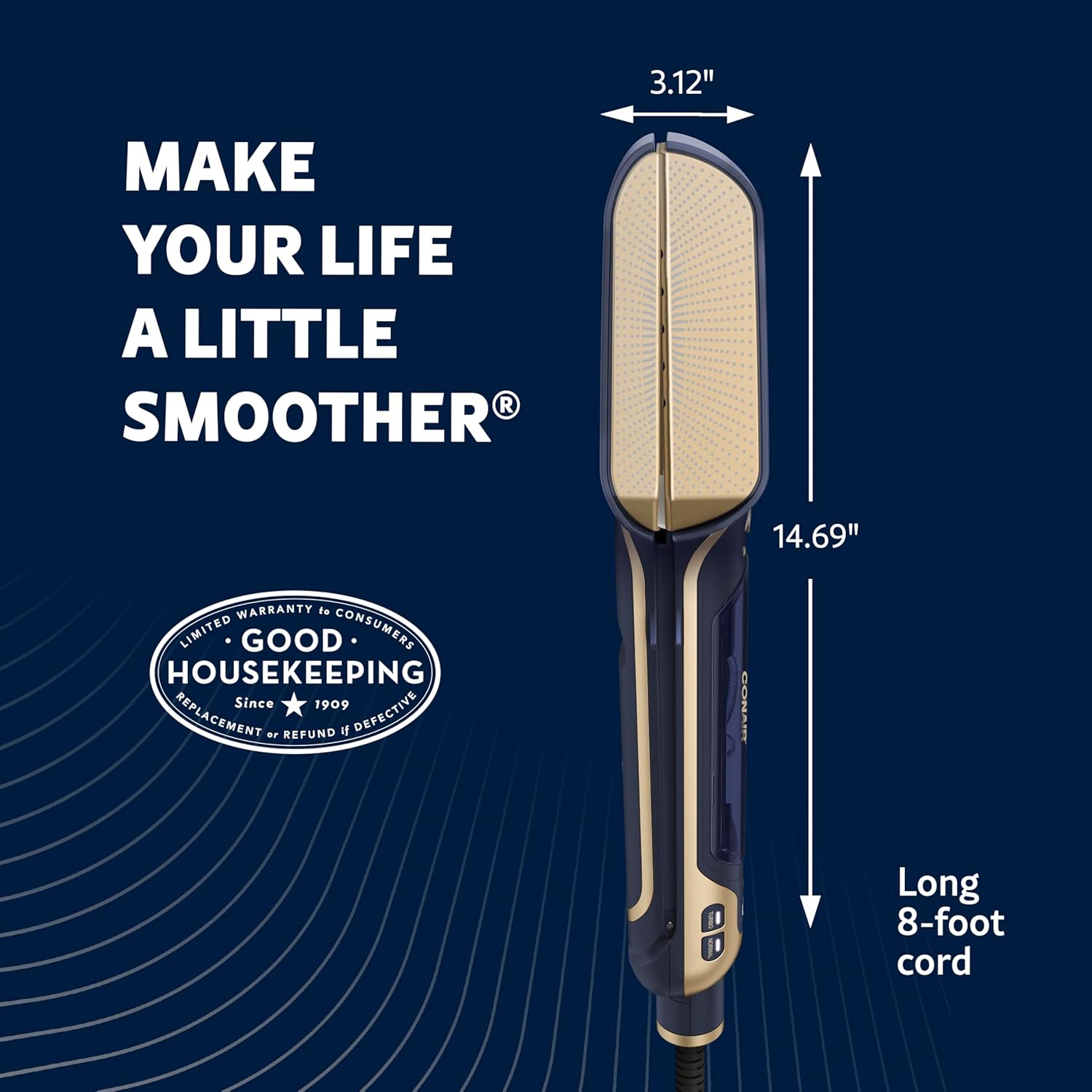 Steam, press, and iron—all-in-one convenient garment care tool! Designed for complete 3-in-1 ease and convenience, the innovative Conair® SteamStylist® with Fabric Shaver takes the wrinkles out of clothes and the stress out of garment care. With cutting-edge 360° steam-and-press technology, the heated ceramic-coated aluminum plates glide easily over any garment to press and iron with perfection, saving time by pressing both sides of a garment at once. The unique plate shape allows the iron to get into hard-to-reach areas with ease, and with the touch of a button, you can switch seamlessly between ironing, steaming, and pressing. Use this Conair® steamer horizontally, vertically, and at any angle for ultra-smooth, versatile steaming that leaves clothes looking fresh and perfectly pressed. The Normal steam setting is ideal for most garments, and the Turbo setting provides supercharged steam to smooth away even the most stubborn wrinkles. Remove and refill the water reservoir in seconds and use the extra tank for fewer refills. With 3-in-1 versatility, a sleek, lightweight profile, extended 8-foot cord, storage bag, fabric shaver, and extra water tank, it’s the only garment care tool you’ll ever need to keep your wardrobe perfectly wrinkle-free and fresh-pressed. Use this travel steam iron at home, the office, or wherever your busy life takes you and keep clothes looking fresh-pressed and like new without the hassle or expense of the dry cleaner. Pack it in a travel bag for on-the-go convenience and look your best wherever you land!