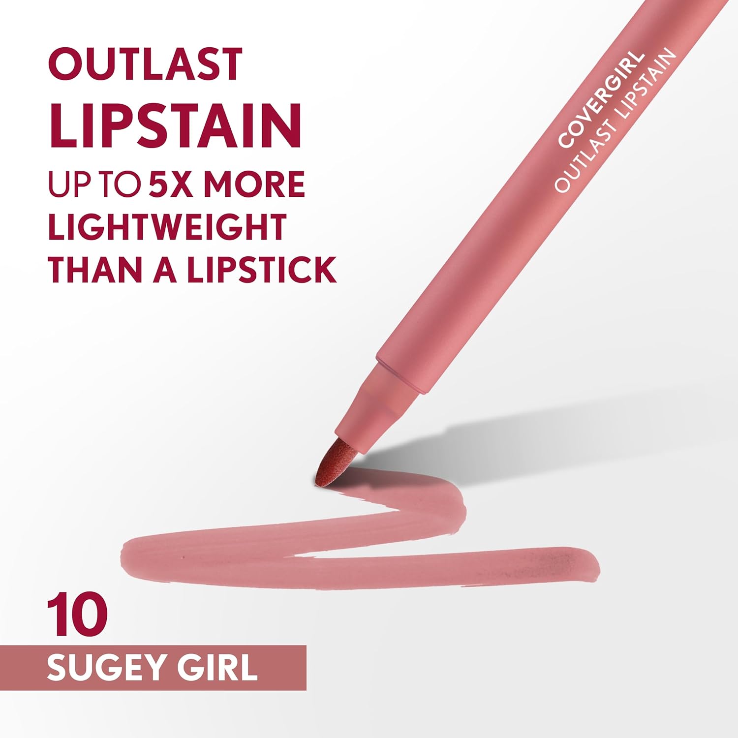 Covergirl’s iconic Outlast Lipstain is back and now vegan! Non-drying, lightweight buildable lip stain that stays put, doesn’t feel tight and feels fresh all day. In just 1 swipe, the lip color glides on smooth and the precision pen allows for an effortless application. Transfer-proof formula in 14 amazing colors, infused with plant-based acacia tree extract, for a Covergirl lip stain that won’t kiss off!