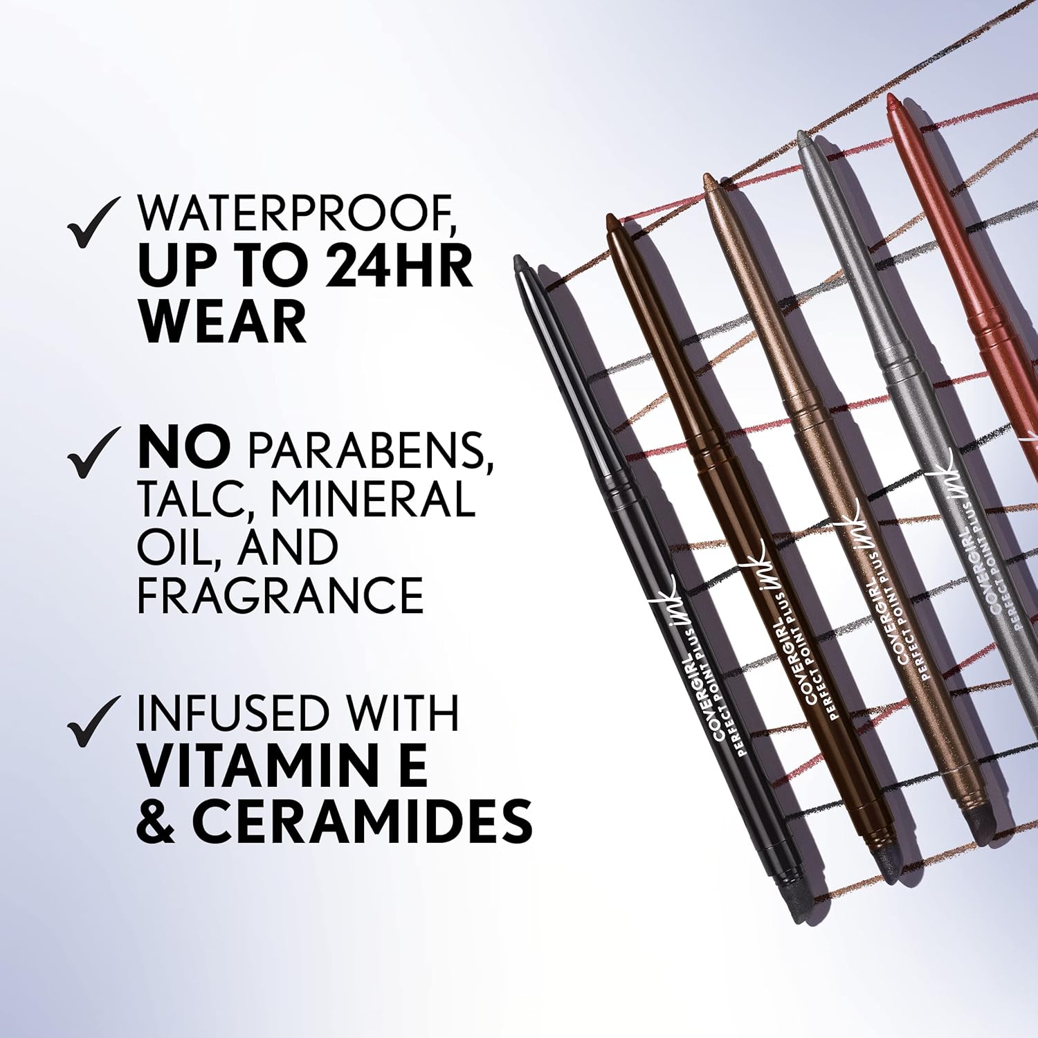 The Covergirl Perfect Point Plus Ink Gel Eye Pencil glides like gel and stays on like ink. Formulated with a clean vegan formula that’s infused with vitamin E and ceramide, this eyeliner doesn’t contain parabens, talc, mineral oil, or fragrance. The highly pigmented matte and shimmery shades provide instant color payoff in one stroke. The Covergirl makeup gel formula glides on smoothly without skipping, dragging, or tugging for easy application and features a precise tip so you can create a perfect line every time. Smudge-proof and transfer-proof, this Covergirl eye pencil offers flawless wear for up to 24 hours. Based on a consumer study of 60 women after application:• 98% say glides on easily and that the eye pencil tip is break-proof • 97% say feels velvety soft• 95% say colors look bold• 93% say liner remains well defined throughout the day• 92% say provides precision for ultra-fine line
