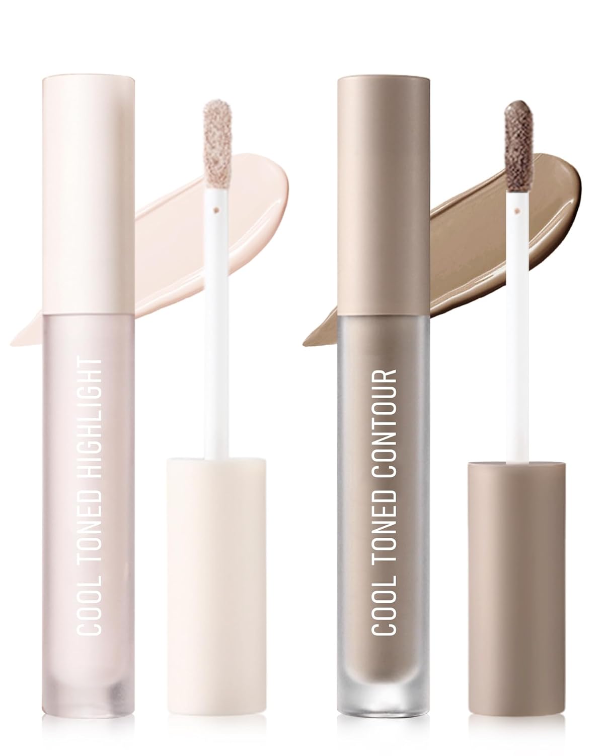1. Beige Contouring Glow Stick delivers a clear, hydrated finish with just one application. The Cool Gray Brown Finishing Liquid Stick instantly tightens contours with a single swipe.