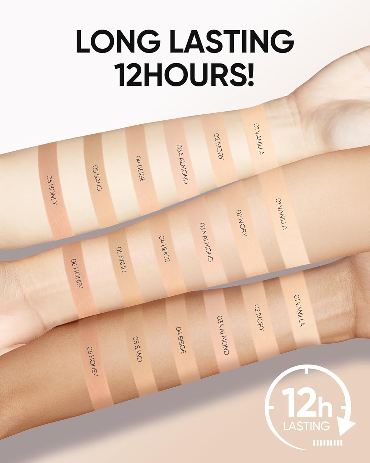 SWEATPROOF OIL-CONTROL FOUNDATION: Raincoat Protective Film Technology shields against oil and water, ensuring a fresh look for 12 hours.