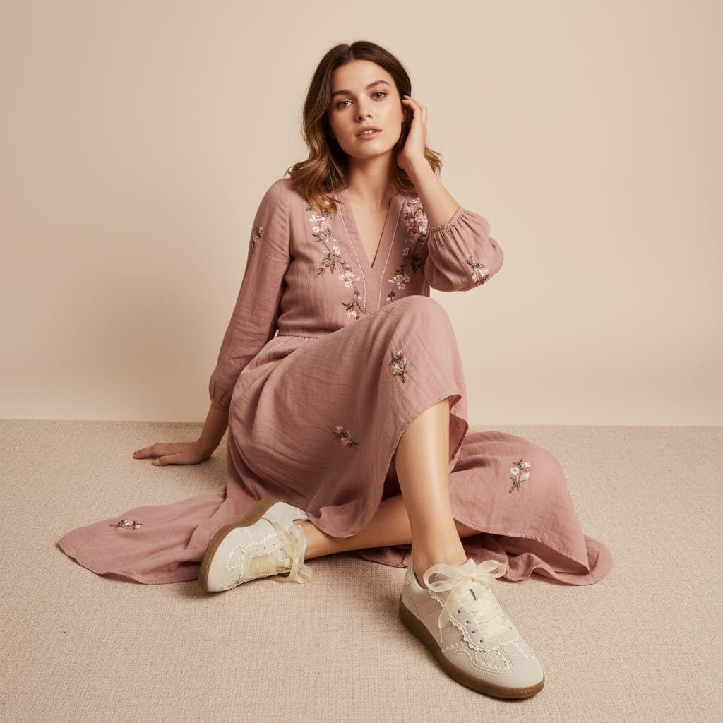 Customers find these sneakers cute with silky laces, comfortable, and of good quality, appreciating that they can be dressed up or worn casually with jeans or dresses. Moreover, the shoes come with regular laces and offer good value for money. However, the sizing receives mixed feedback – while some say they fit as expected, others mention they run narrow in the toe box. Additionally, the color receives mixed reviews, with some customers noting the shade is darker than anticipated.
