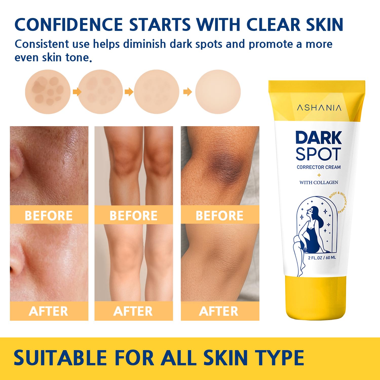 ✔ Advanced Dark Spot Corrector: Targets persistent dark areas on the face and body, helping reduce age spots, uneven tone, and dull-looking skin.