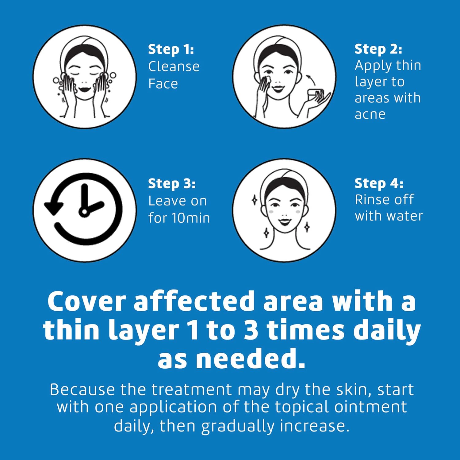 10 MINUTE ACNE TREATMENT Apply a thin layer over your face, back or the affected area, wait 10 minutes and wash off with warm water. A consistent daily regimen will ensure the best results.