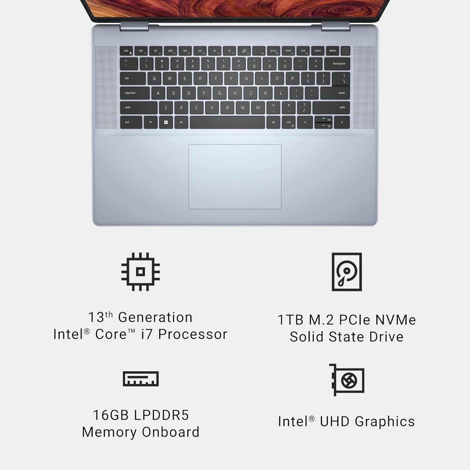 Dell Inspiron 16 Plus 7640 Laptop – 16.0-inch 16:10 2.5K Display, Intel Core i7-13620H Processor, 16GB LPDDR5 RAM, 1TB SSD, Intel UHD Graphics, Windows 11 Home, Onsite & Migrate Service – Ice Blue
