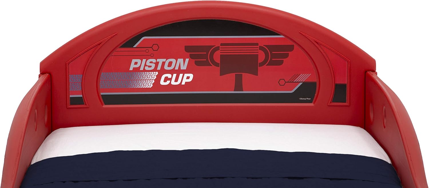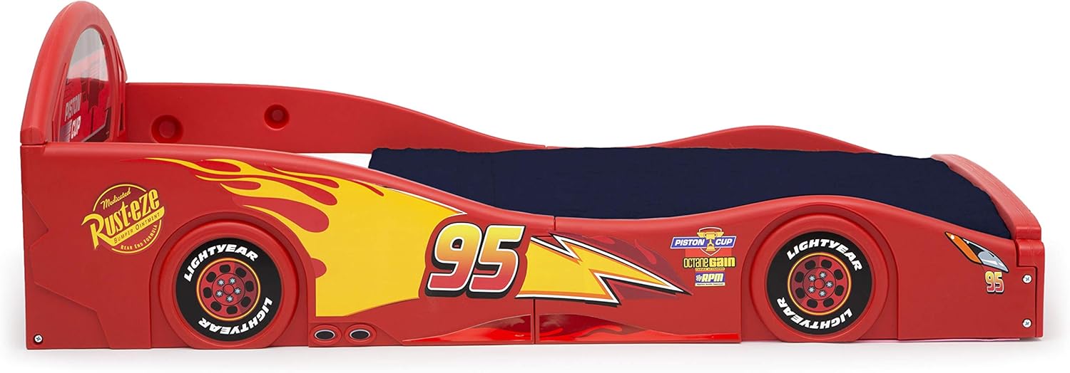Delta Children Disney Pixar Cars Lightning McQueen Race Car Sleep and Play Toddler Bed with Attached Guardrails