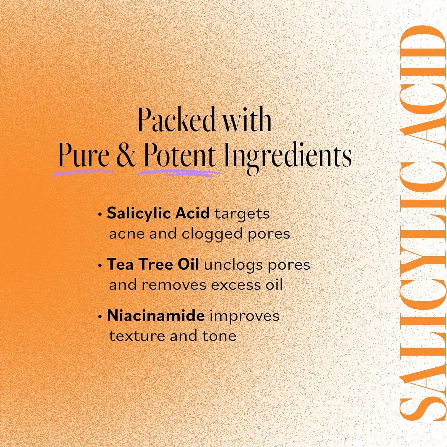NATURAL FORMULA: Packed full of powerful natural ingredients: Salicylic Acid, a beta hydroxy acid, helps skin cells shed more easily. Tea Tree Oil, Willow Bark Extract, calming Lavender, and Chamomile help to unclog pores and minimize redness