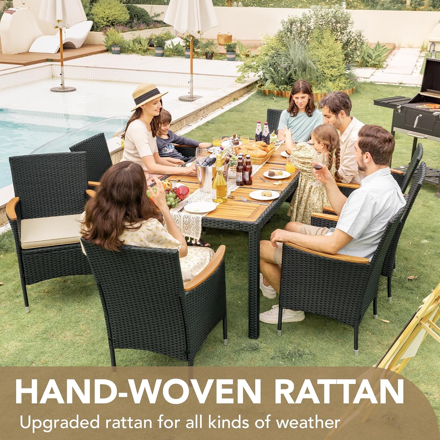 Natural & Beautiful: The classic patio table and chair set is the perfect addition to your outdoor space. Devoko outdoor dining set consists of 1 table and 8 chairs. Perfect for parties or relaxing with family and friends on the garden or terrace.