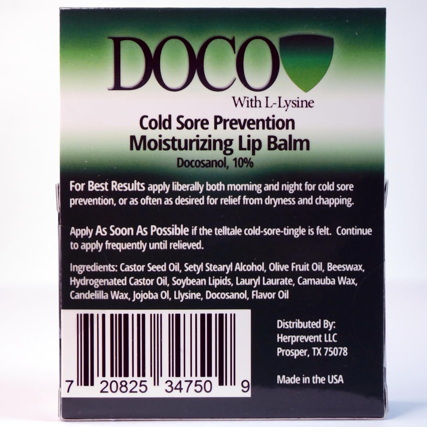 Docoshield Moisturizing Lip Balm with Lysine and Docosanol