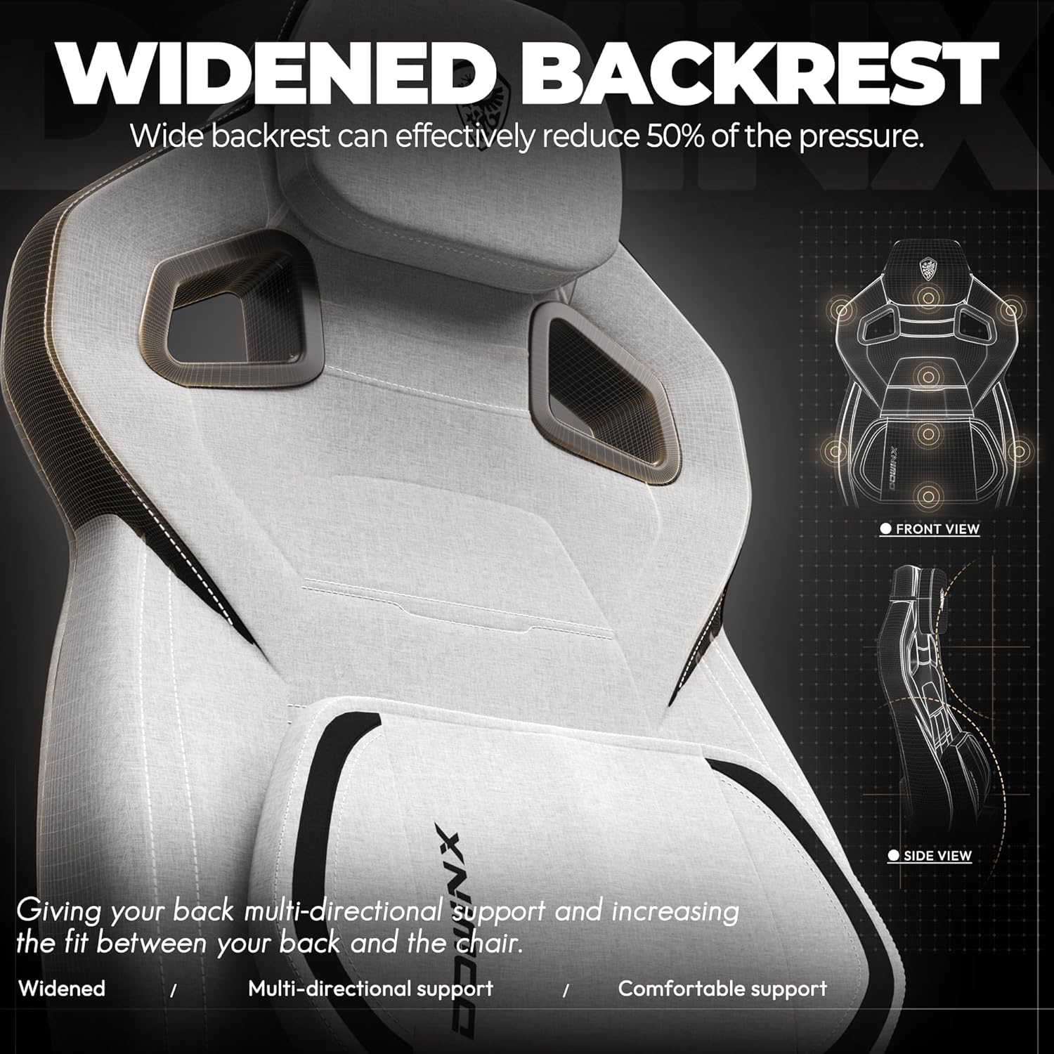 Ergonomic Wide Backrest for Full Support: The Dowinx gaming chair features a wide backrest that provides exceptional support for your back and spine, making it ideal for heavier people. It effectively relieves pressure, ensuring long-lasting comfort and support during extended gaming or working sessions.