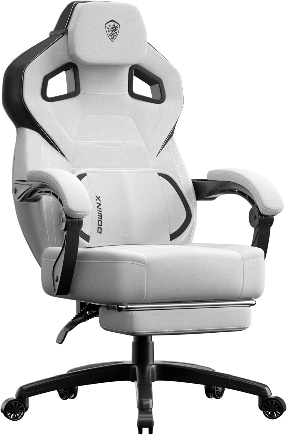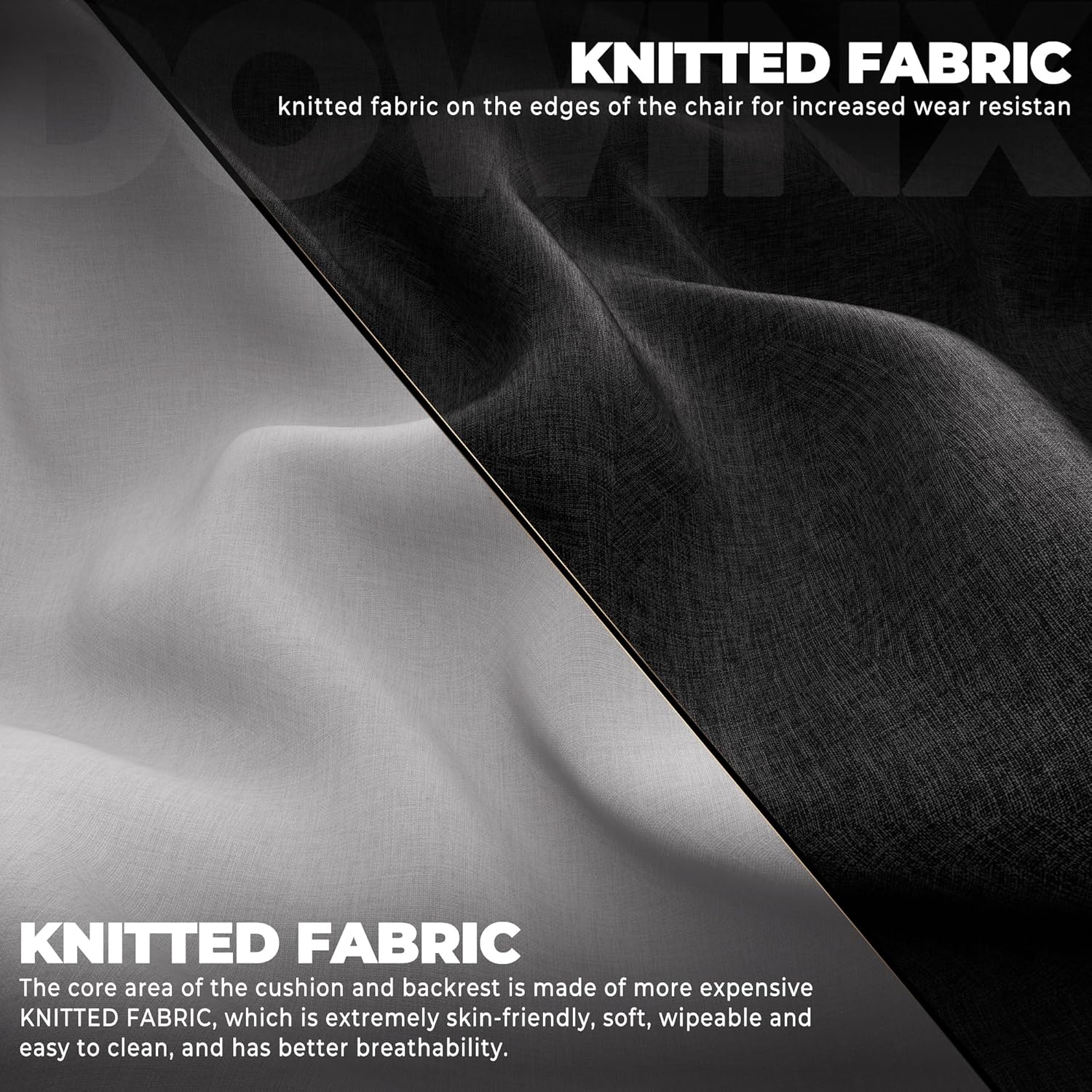 Premium Materials for a Luxurious Feel: Crafted from knitted fabric, the gamer chair offers a luxurious touch and premium feel. The durable yet breathable materials ensure long-lasting use while maintaining comfort. The included headrest and massage lumbar pillow provide additional comfort.