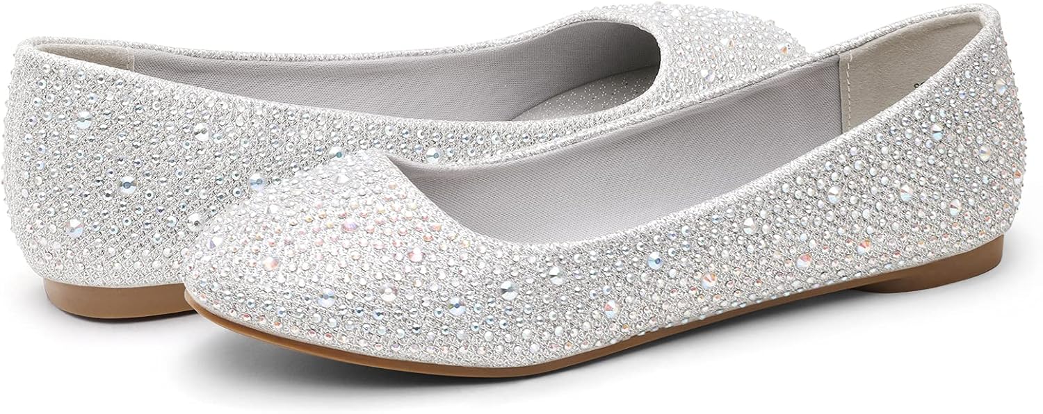 Customers find these ballet flats sparkly and perfect for dressy occasions like weddings, with good value for money. The shoes receive positive feedback for their style and quality. However, customers disagree on the fit, with some finding them too tight for wide feet, and comfort, with some describing them as super comfortable while others say they hurt. The sizing is also mixed, with some finding them perfect while others say they run small.