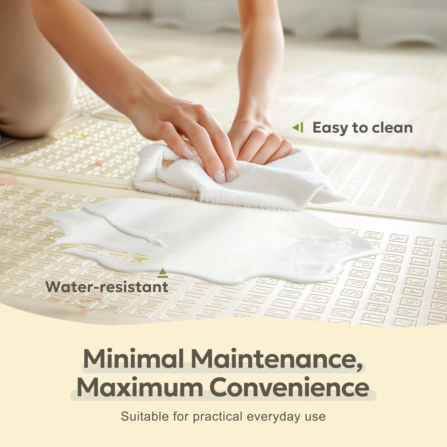 EASY TO CLEAN & FOLD: Enjoy effortless clean-ups with our waterproof foam play mat that resists spills and stains. A simple wipe with a damp cloth or towel keeps it pristine and ready for play. Its foldable design allows you to quickly fold it into a compact size and ensures easy storage and portability