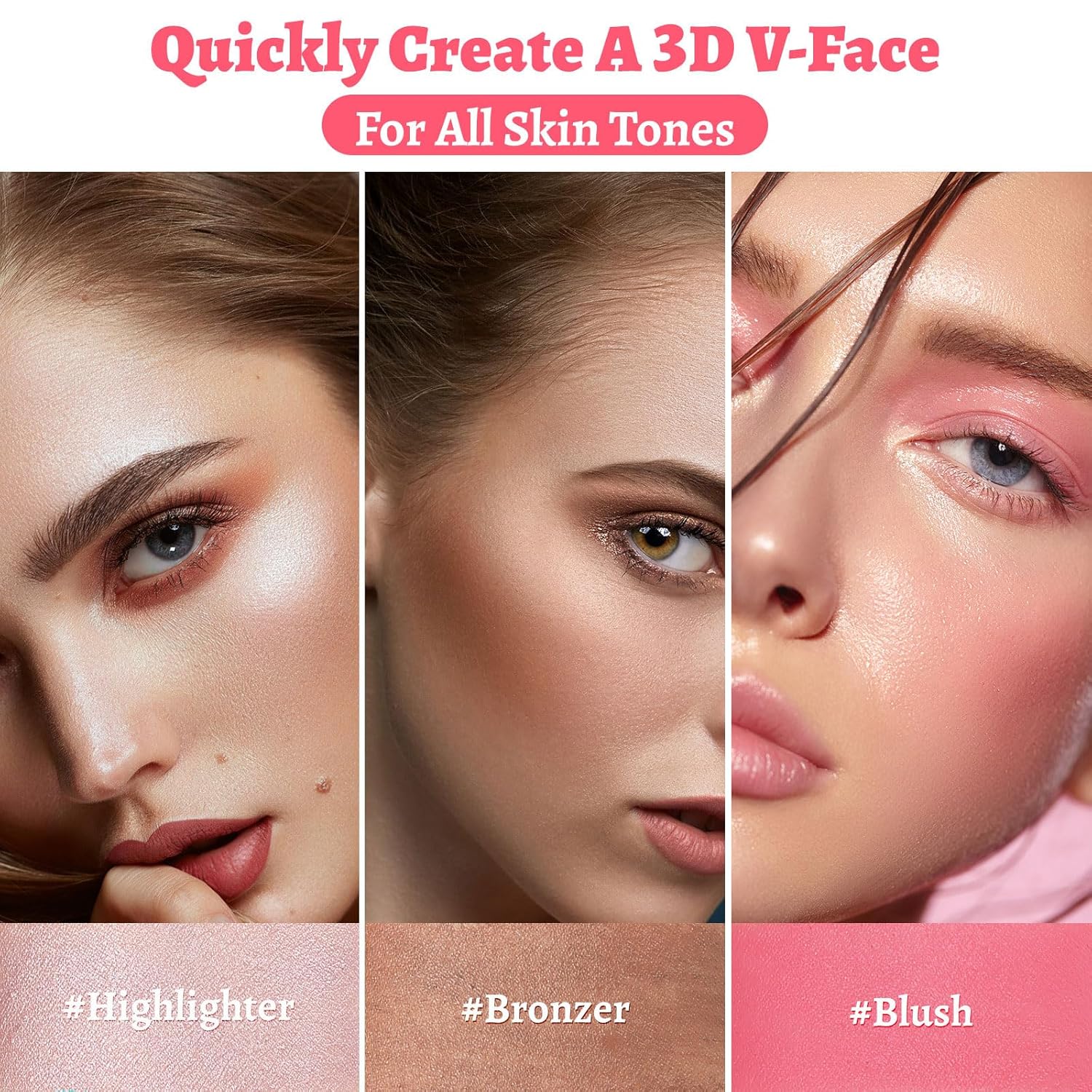 3-in-1 cream texture easy to apply and blend, Create a three-dimensional and bright blush contour highlighter makeup look