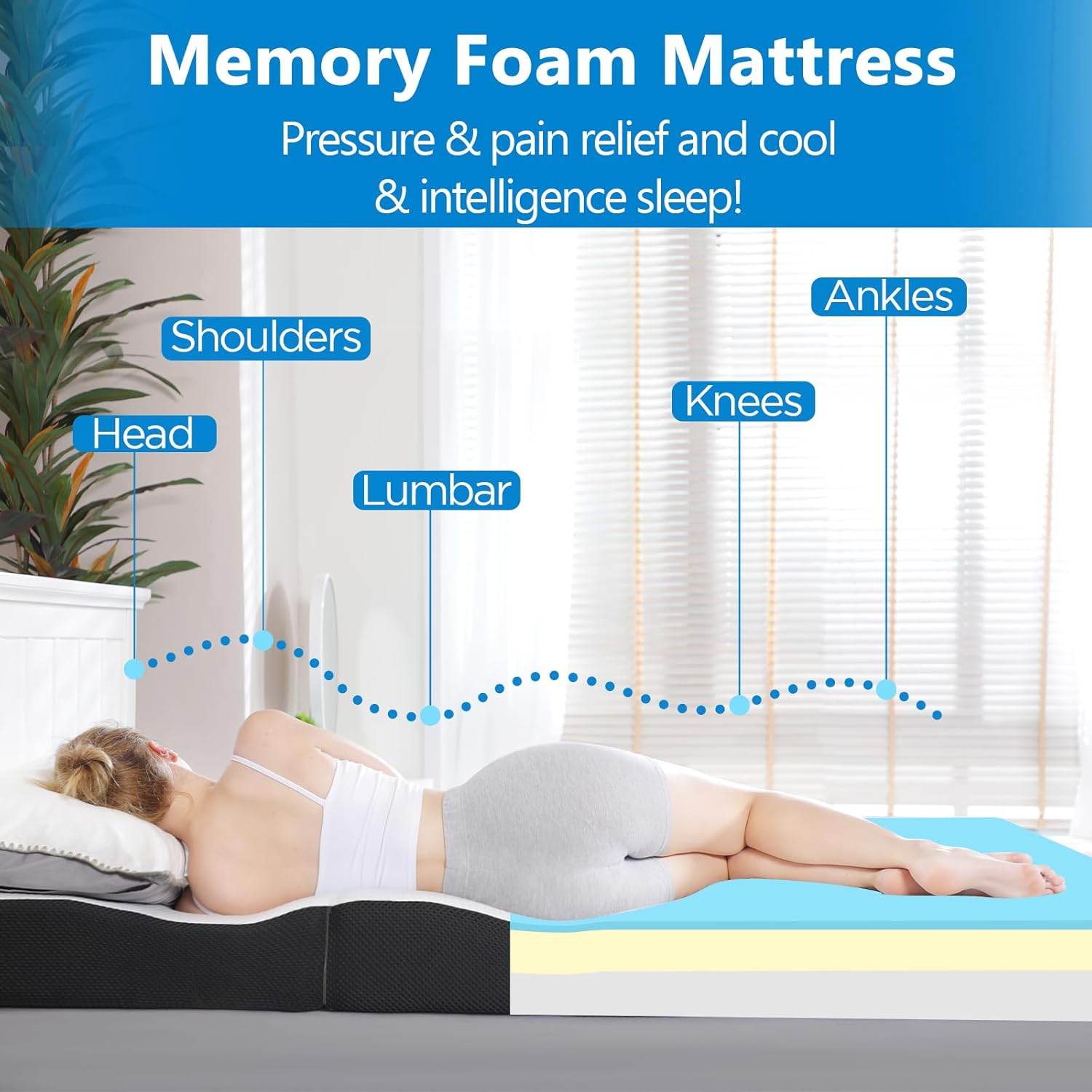 Premium Folding Mattress: Superior memory foam mattresses feature skin-friendly fabrics,making your skin feel more comfortable than ever; Superior memory foam and strong support cotton guarantee its service life.