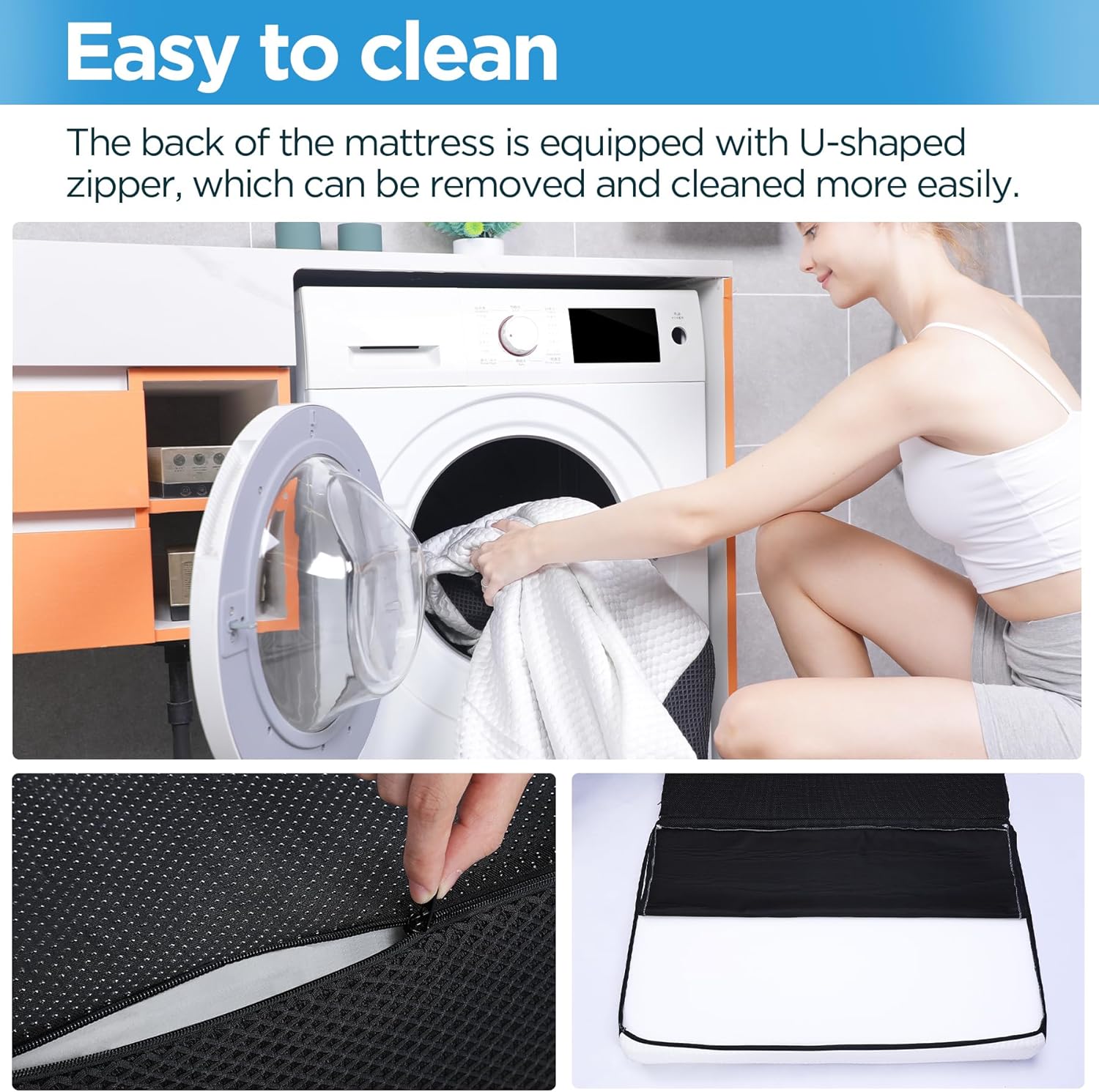 Premium Washable Cover: The Tri-fold mattress can be folded up and carried. When folded up, it can be used as a cushion, which can be stored anywhere, practical and space-saving. You can also take it outside and use it as a picnic mat because it’s washable, so you don’t have to worry about getting dirty.