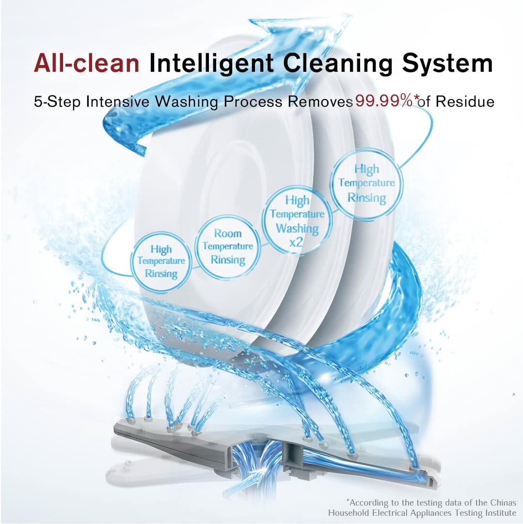 Intelligent Cleaning System: FOTILE’s rotary sprays and all-angle water spray design lets the contents of the dishwasher get fully washed and rinsed with no blind spots. The dishwasher accurately calculates the water jet’s spray and angles to create a water-fall like blanket for thorough deep cleaning.