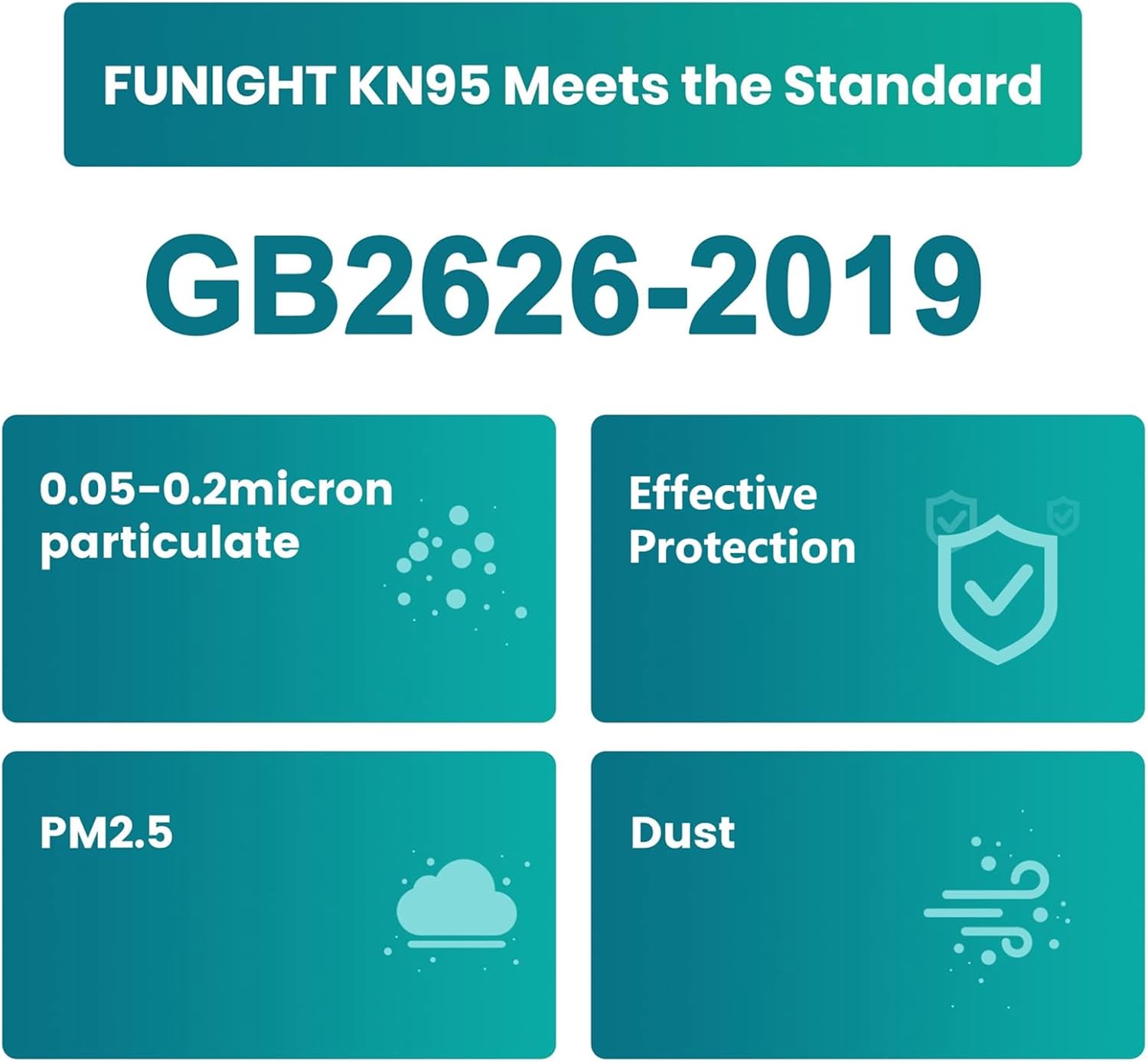 Funight KN95 masks are manufactured and assembled in strict accordance with the GB2626-2019 standard.