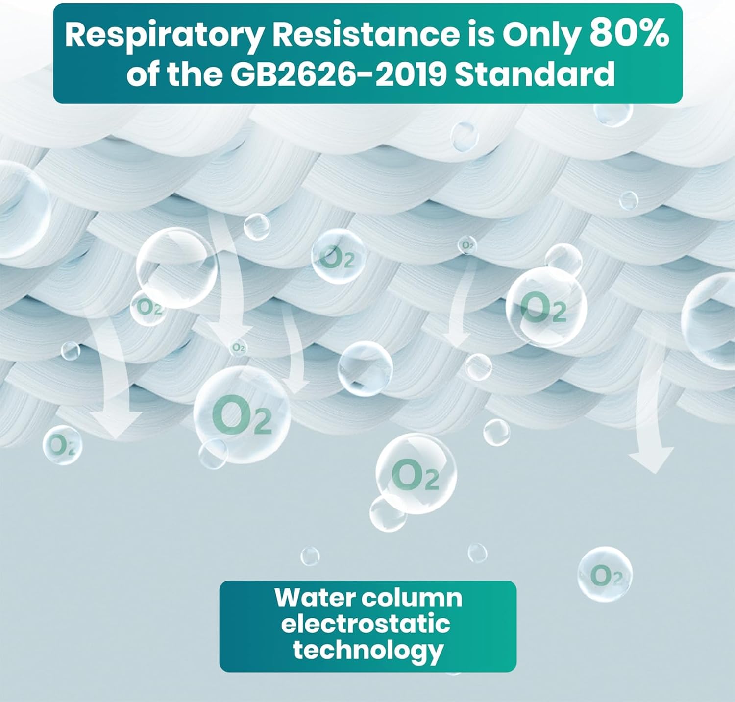 Funight masks have 22% less breathing resistance than similar products, but the filtration efficiency is still greater than 95%.