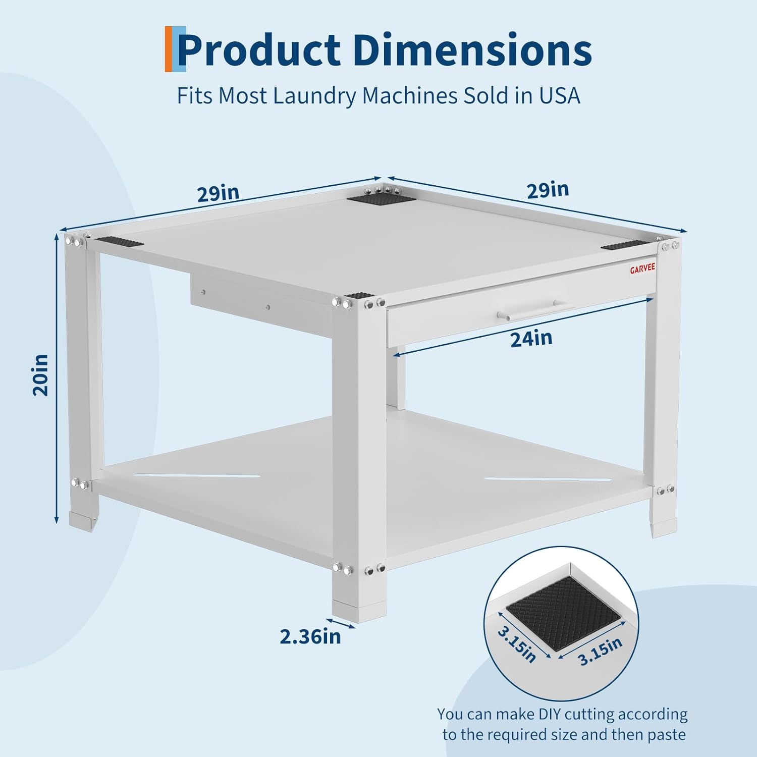 UNIVERSAL COMPATIBILITY: Say goodbye to back strain with our washer pedestal, which elevates machines by 20 inch,Ensuring 29in×29in top. Enjoy easy access to your laundry, reducing the need for bending and enhancing your daily comfort.