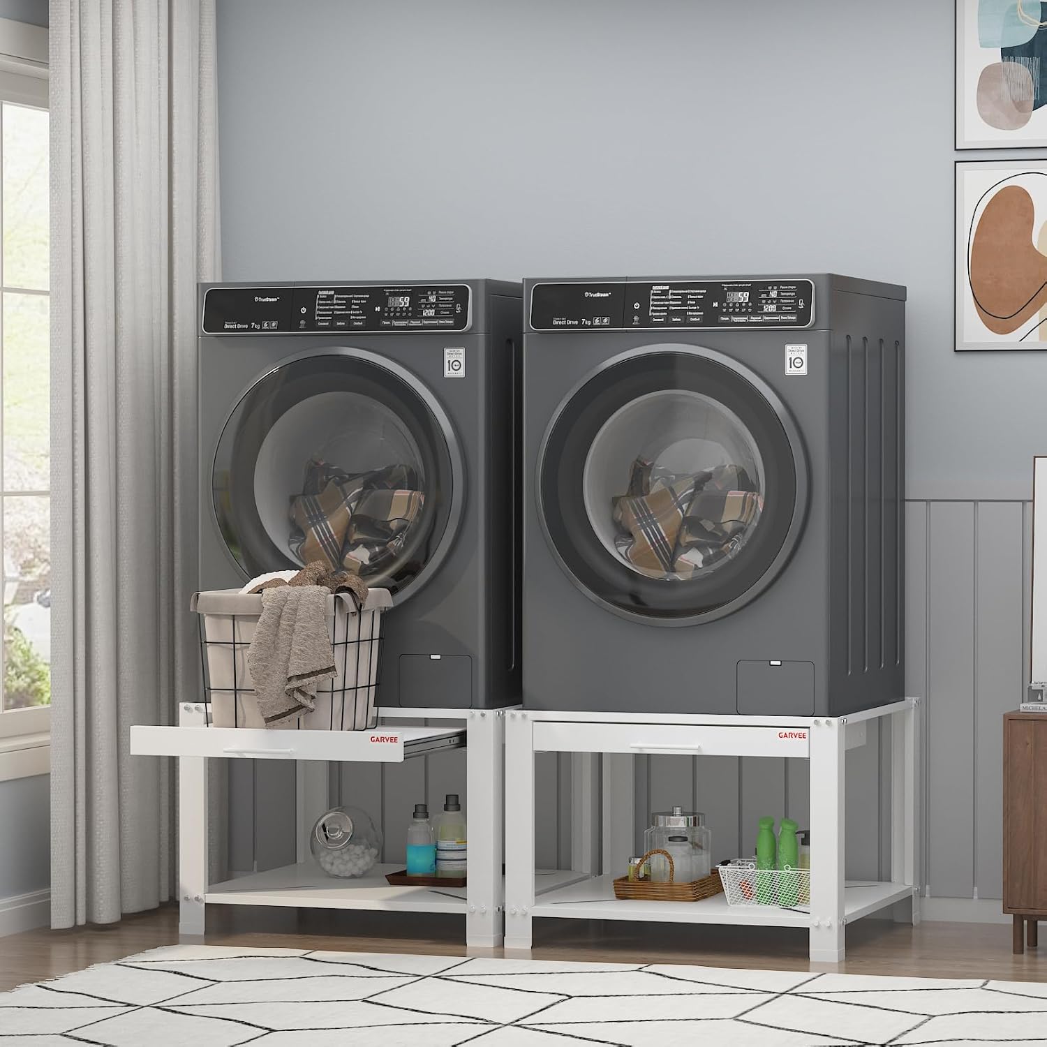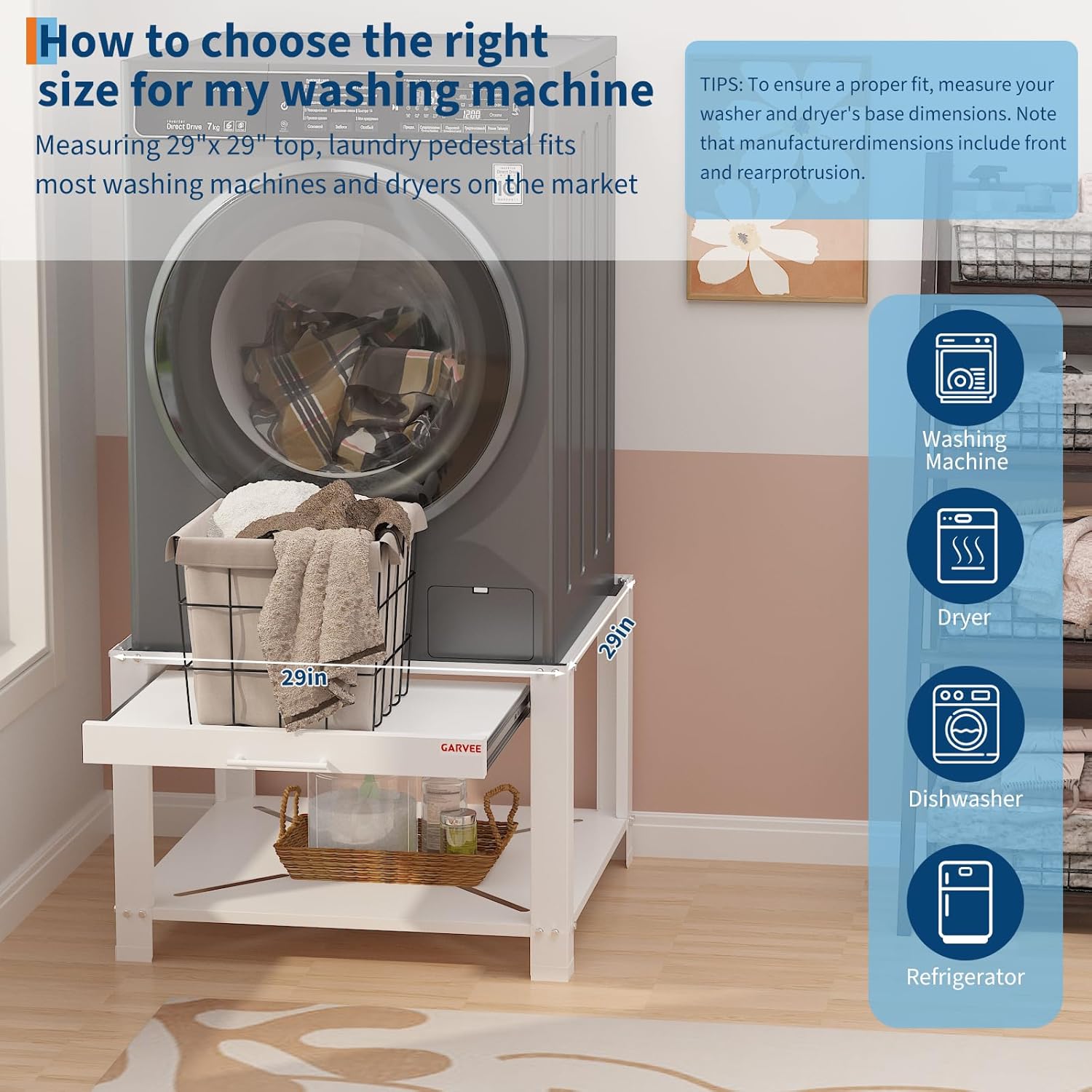 WIDE APPLICATIONS: This 29 inch Wide laundry pedestal are suitable for all kinds of household appliances in the market, such as washing machines, dryers, refrigerators, dish-washing machines, laundry cabinets, etc.