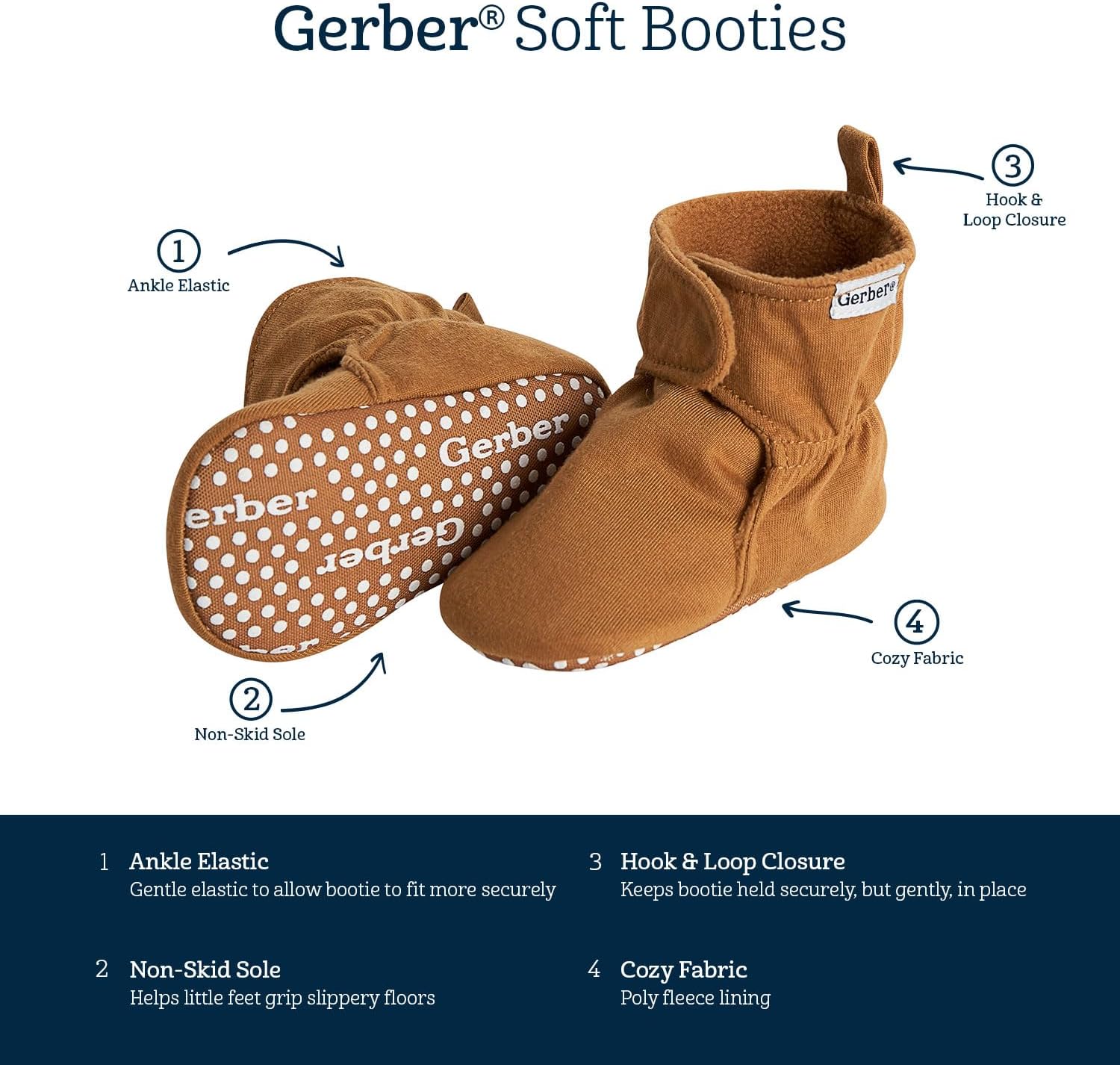 These baby booties are designed to keep your baby’s little feet warm and comfortable with their poly-fleece lining. The booties feature a non-skid cotton canvas sole that provides additional balance support and an extra-large hook and loop strap that ensures a secure fit. With a heel loop, they’re easy to remove, which also minimizes wear and tear on the booties. Your baby will love how cozy and secure they feel. This pack includes one pair of baby booties.