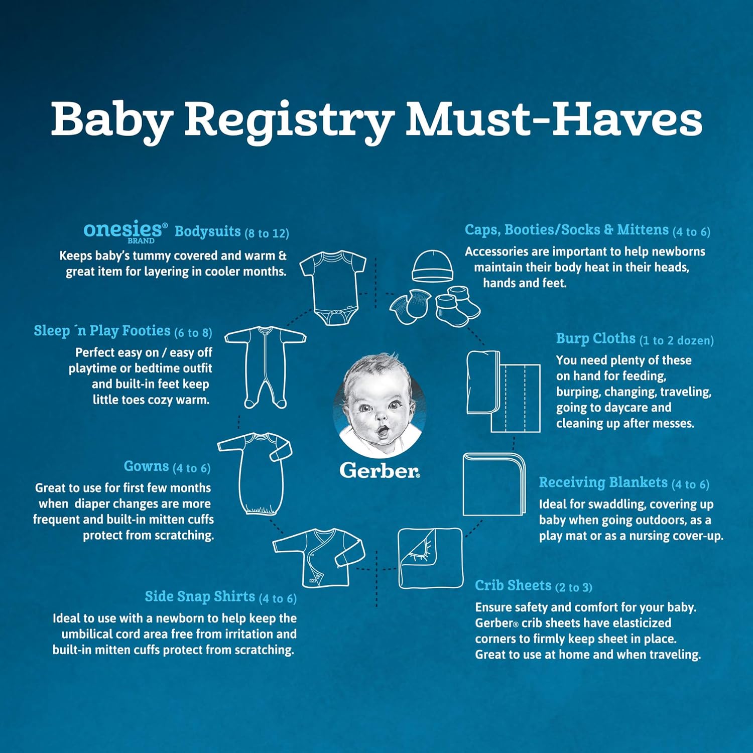 This 4-pack of baby girls’ lap shoulder gowns from Gerber makes bedtime fun! adorable puff print and screen-print accents come together to create themed designs that are fun for little eyes to look at. Made from 100 percent cotton rib, the cool, breathable fabric ensures she’ll sleep more soundly. A handy open bottom design makes late night diaper duty sail by quickly. Laundry day goes by more quickly thanks to the easy care fabric