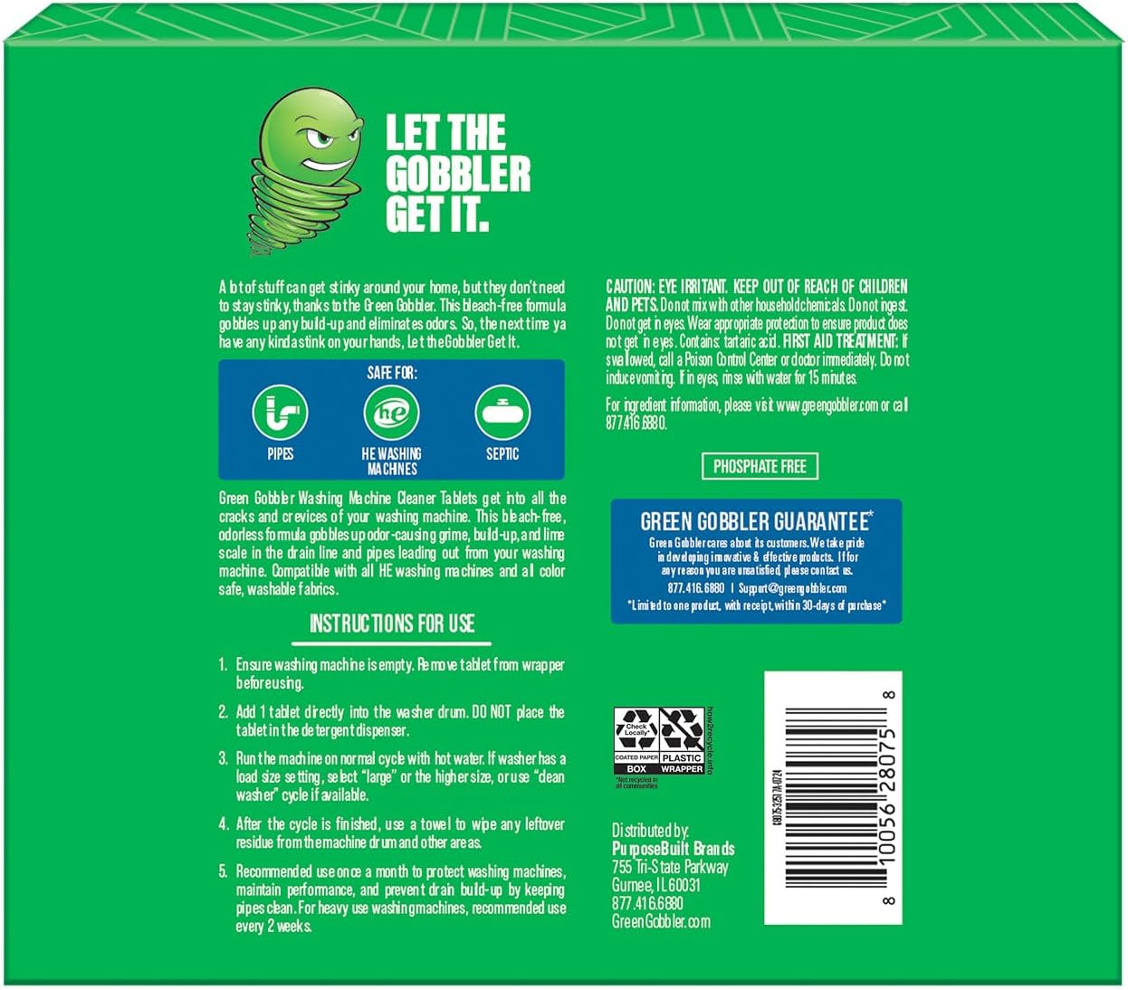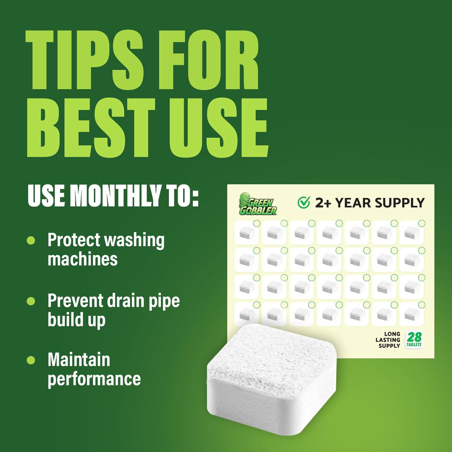 Green Gobbler Premium Washing Machine Cleaner & Deodorizer Tablets with Pipe, Drain & Hose Clean Technology | Front & Top Load Washers | 28 Count