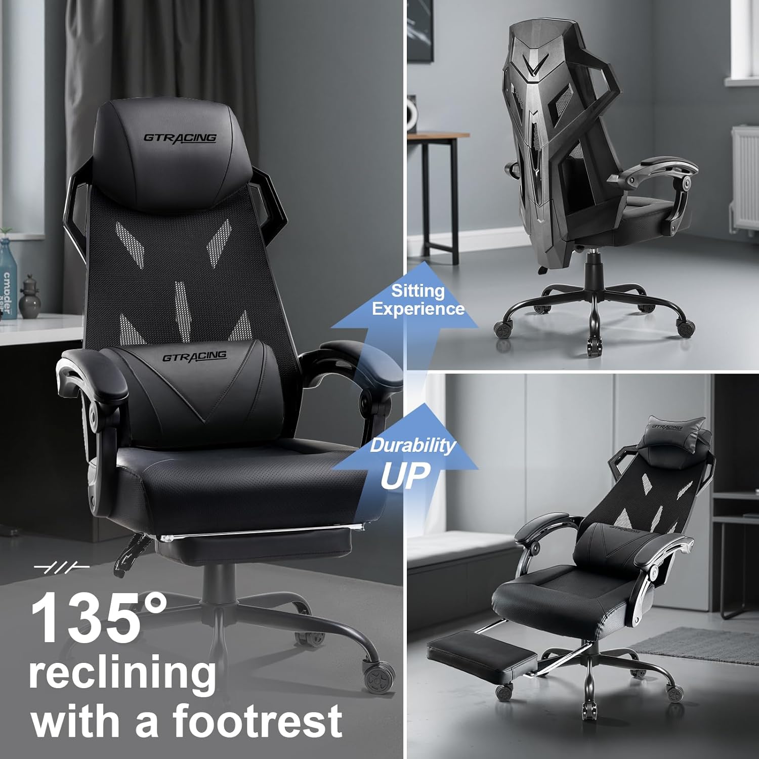 Adjustable Recline and Footrest: Customize your seating position with a 135-degree recline and extendable footrest for optimal relaxation.