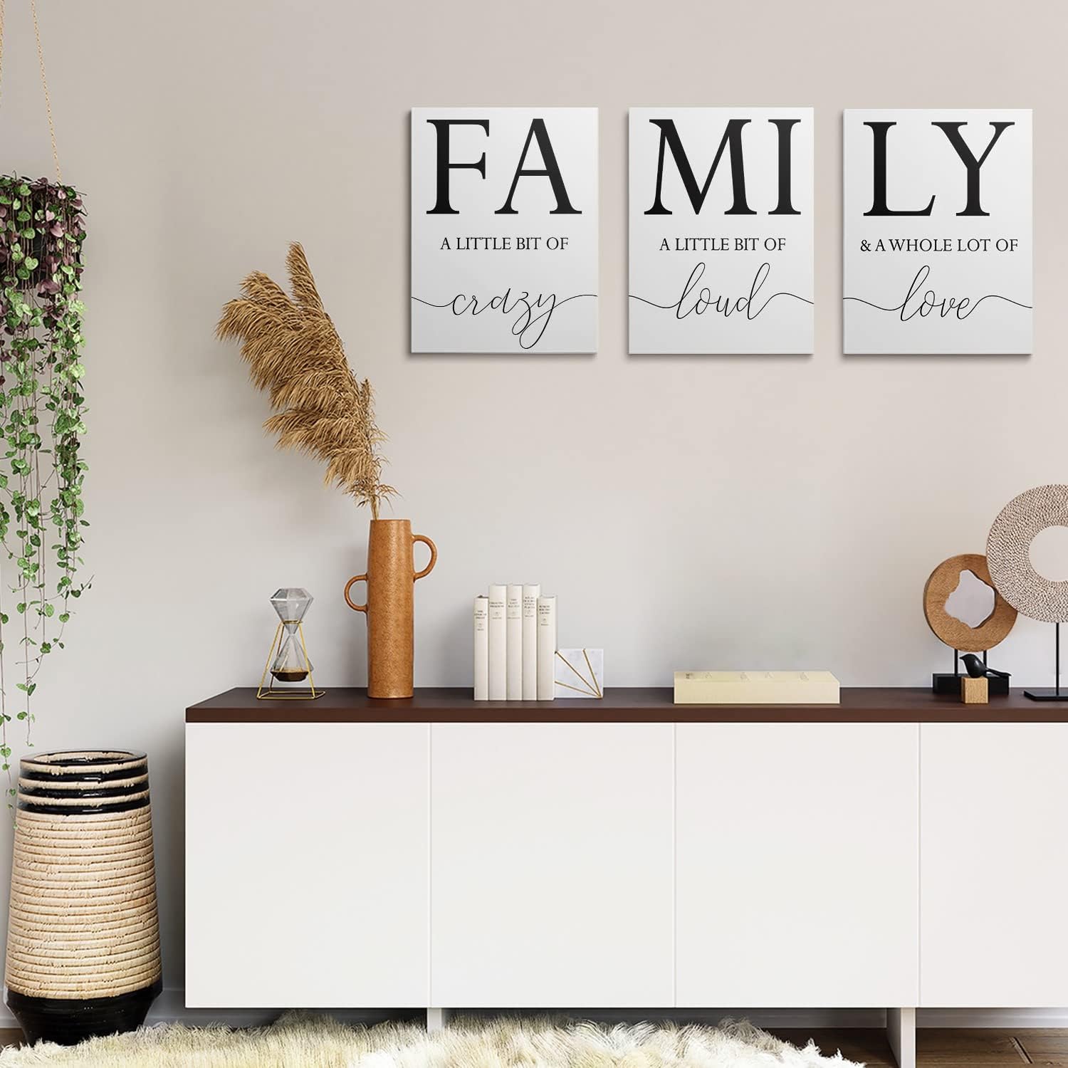 GUBIYU Home Family Wall Decor, Set of 3 Inspirational Canvas Prints Black and White Framed Canvas Art Paintings Wood Wall Decoration for Dining Room Bedroom Living Room 12″x16″
