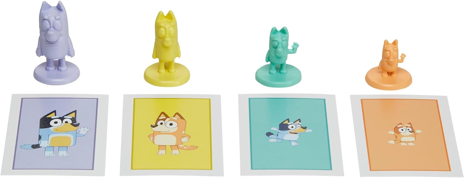BLUEY CHARACTER MONOPOLY JUNIOR TOKENS: In the Monopoly Junior: Bluey Edition game, players go around the board as Bluey, Bingo, Mum, or Dad