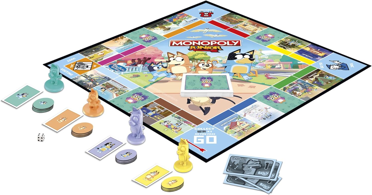 Hasbro Gaming Monopoly Junior Bluey Edition Board Game | Kids Play as Bluey, Bingo, Mum & Dad for Girls & Boys | Ages 5+ (Amazon Exclusive)