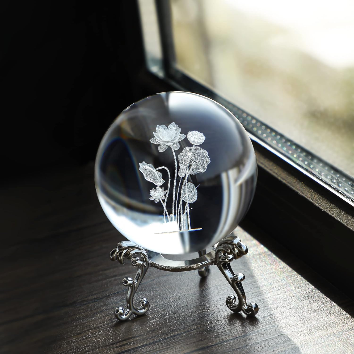 Crystal Ball Size:60mm(2.3inch),Pure and clear glass crystal ball engraved with 3D laser pattern will reflect surrounding, making it as a beautiful decor to table, desk, shelves for home & office, or centerpieces for party.The exquisite crystal gift is suitable for various occasions, company annual meetings, class gatherings, birthday parties and friends gatherings.