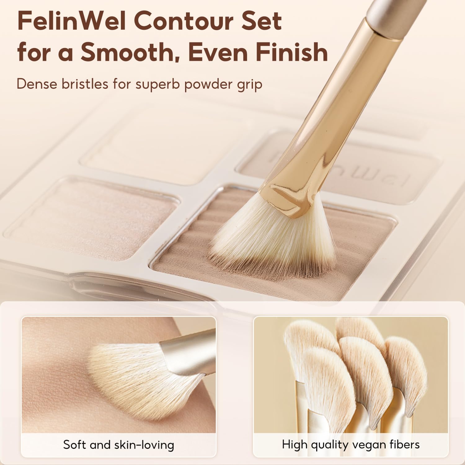 All-in-One Palette: FelinWel contouring kit features bronzer and highlighter, along with a soft nose shadow brush, creating an alluring shine and a beautifully sculpted look. Optimal for face and nose sculpt and glow.Perfect for beginners and pros