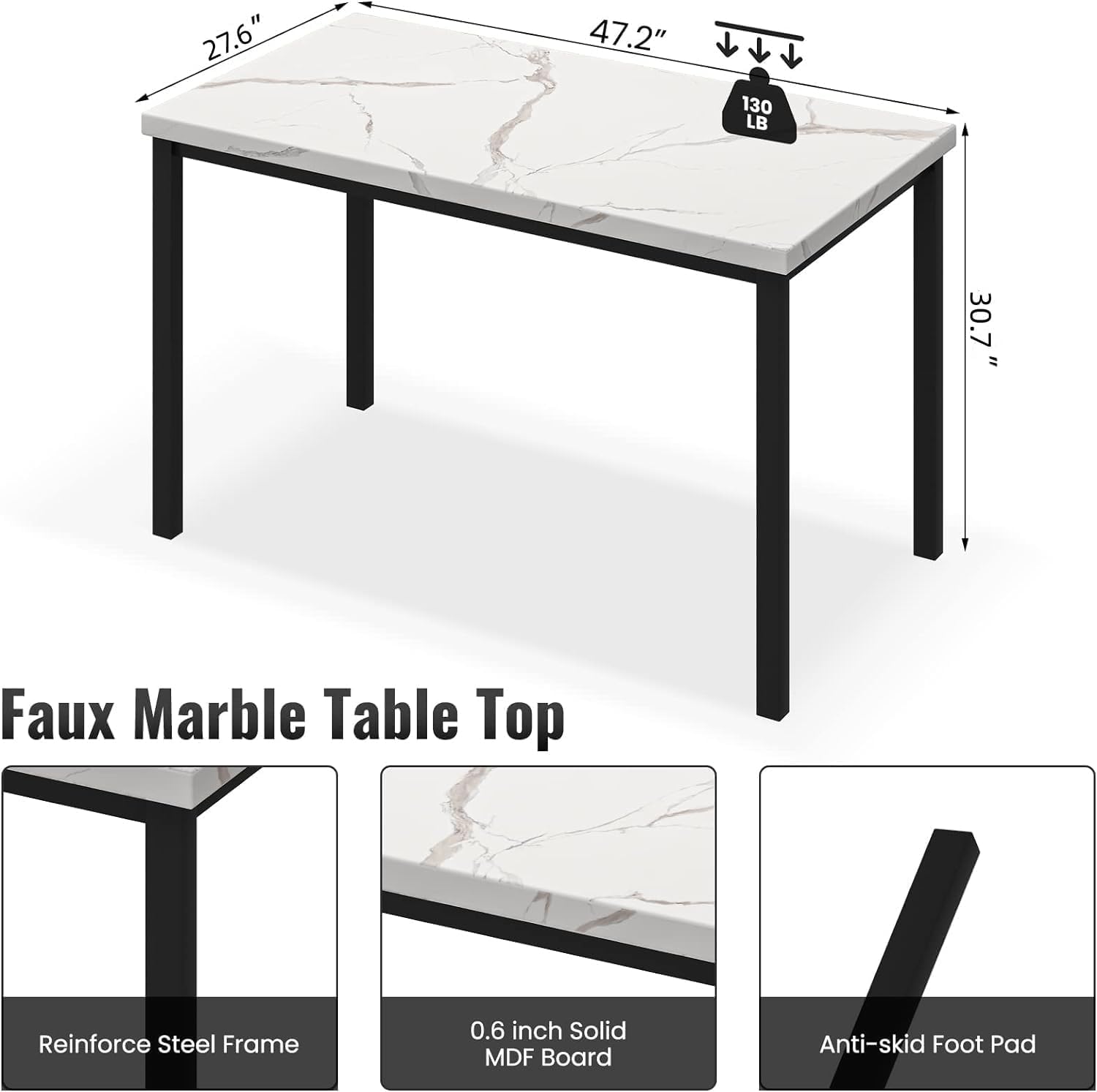 【Elegant & Durable Faux Marble Table】The dining table features high-quality marble patterns that complement any home decor. The smooth, high-grade panel can be easily wiped and is designed to maintain its exquisite appearance for many years