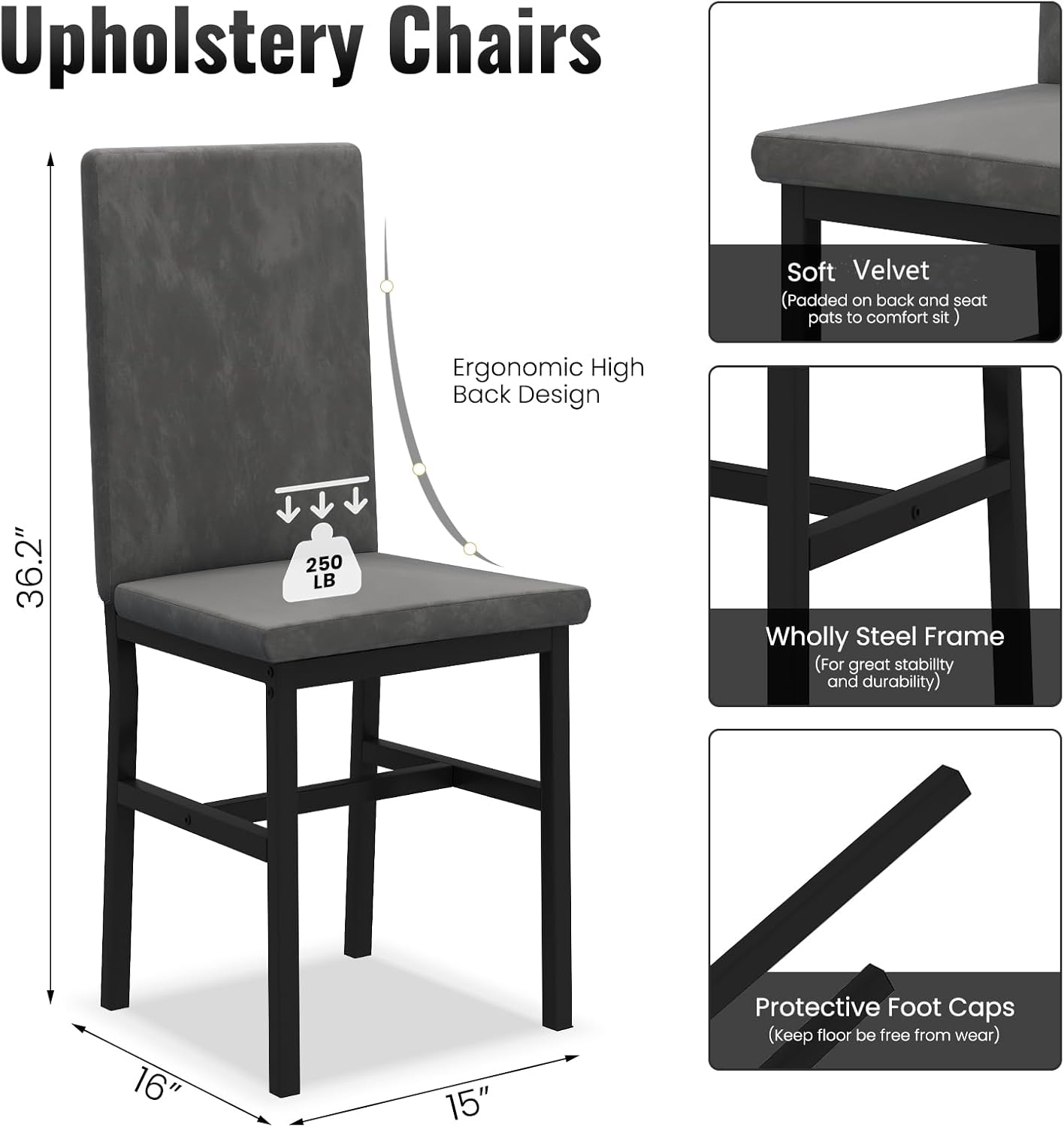 【Ergonomic Velvet Seat】The skin-friendly and soft velvet fabric of this dining chair is paired with high-density sponge and 100° ergonomic high backrest, bringing you and your family a comfortable experience whether dining, chatting or working