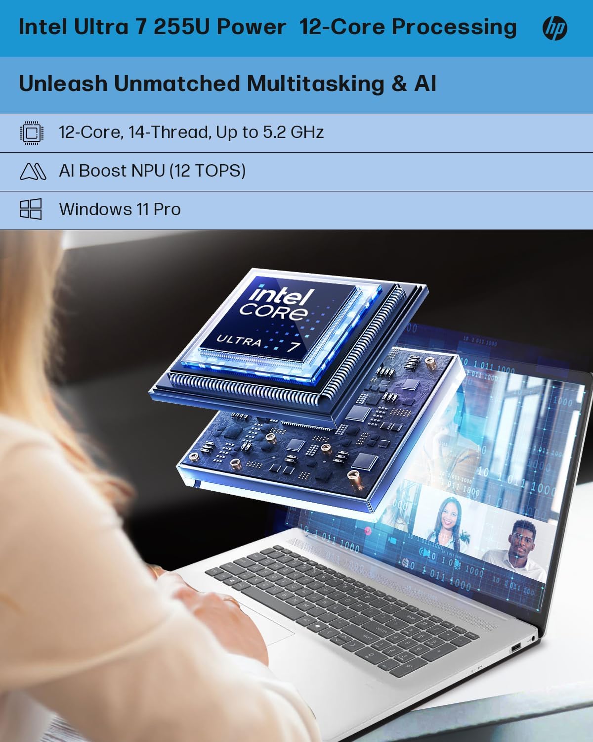 Professional-Grade Processing Power: Drive business efficiency with Intel Ultra 7 255U (12-Core, 5.2GHz) and 12 TOPS AI acceleration in this HP laptop. Pre-installed Windows 11 Pro delivers enhanced security for enterprise workflows