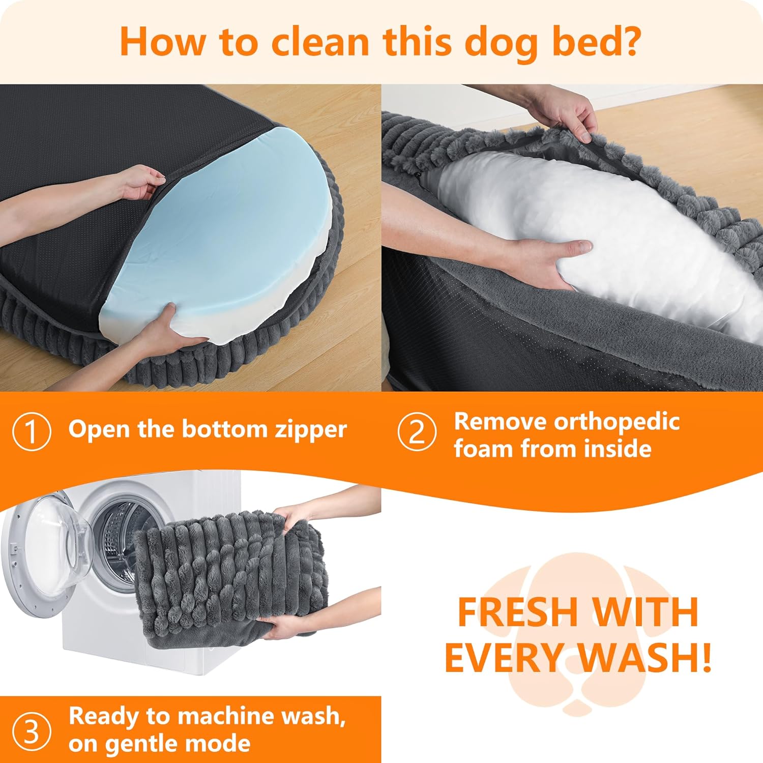 WASH & CARE: The cover is completely removable, simply unzip and remove the padding from surrounding edges and bottom, then machine wash outer cover only. Our packaging includes: 1 x human dog bed, 1 x soft blanket (60″x50″), and 1 x durable strap. NOTE: Our dog beds are vacuum-compressed during shipping, please wait at least 24 hours for the mattress to return to its original after unpacking.