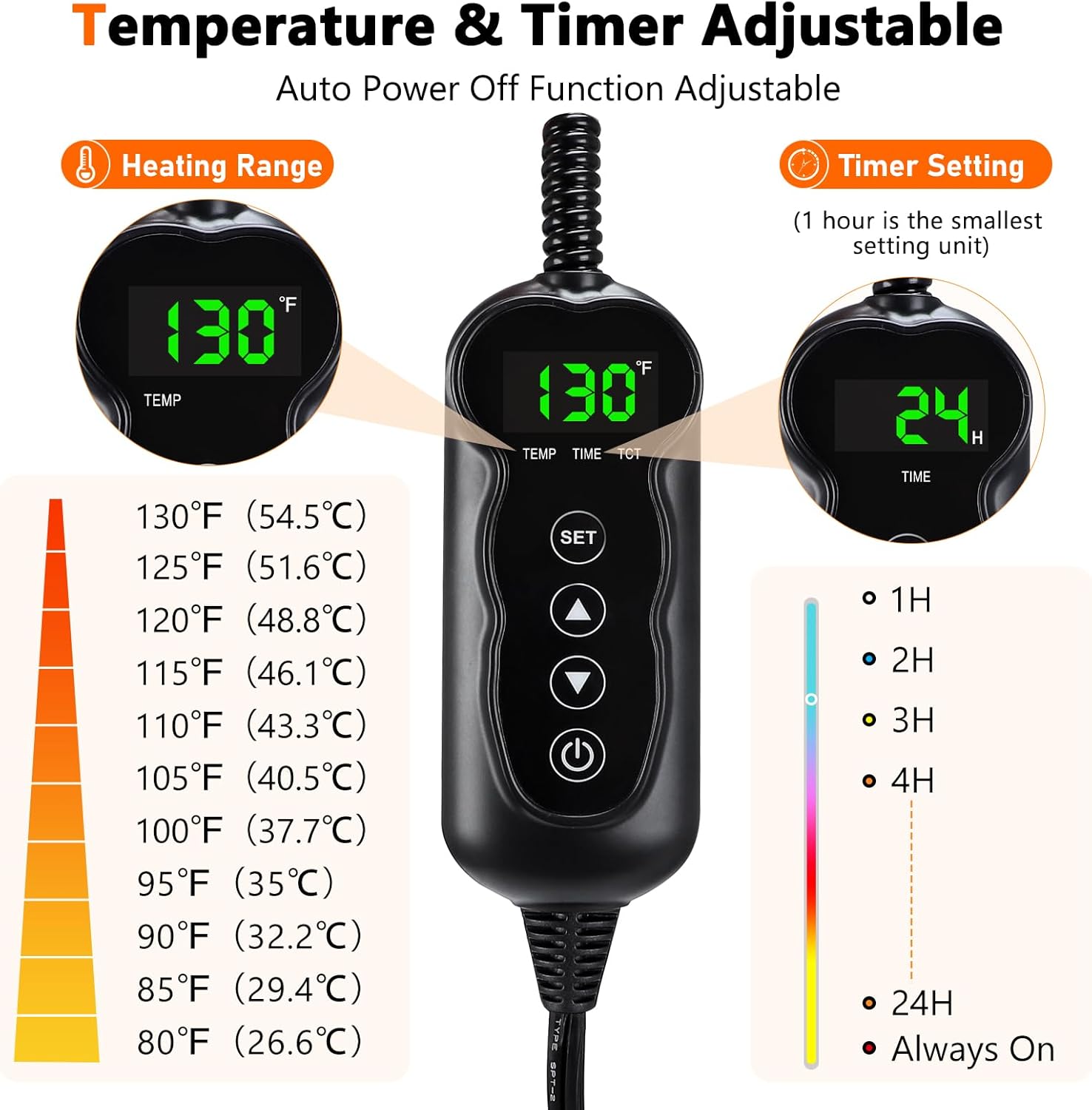 Anti-Overheating function: Equipped with an upgraded thermostat, this pet heating mat can exactly control the temperature and automatically power off when it reaches the setting time, make your pet safer and more comfortable.