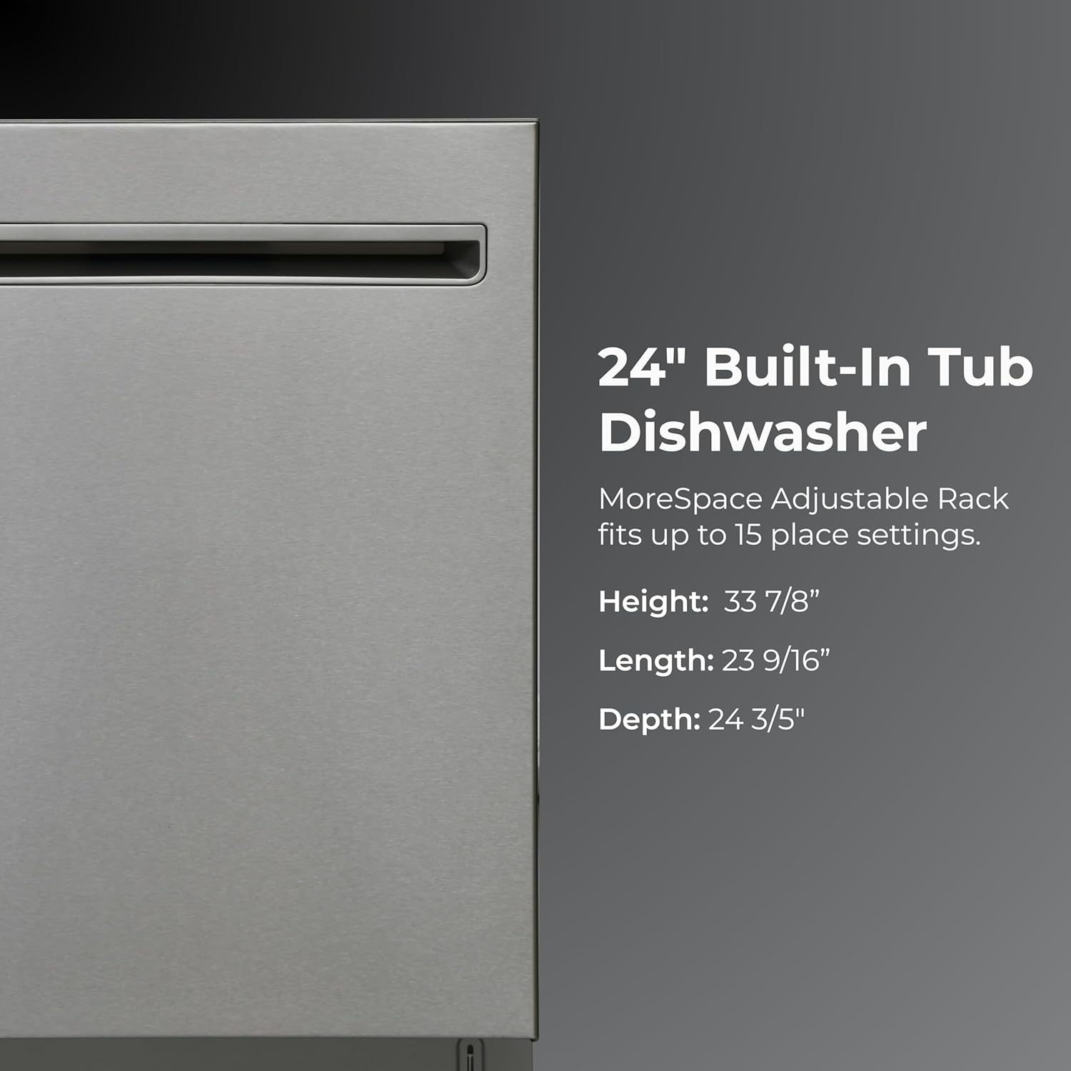The Kenmore 24″ Built-In Dishwasher gives you a powerful clean with an ultra-quiet performance. UltraWash Plus blasts away stuck-on messes with 3 pressurized spray arms and filtered water. The SmartWash cycle adjusts to the mess level, while TurboDry ensures spot-free dishes, even plastics. The EasyFlex Third Rack adds 35% more space for large utensils, and the MoreSpace Adjustable Rack makes room for tall or bulky items. With room for 15 place settings, you can handle big meals with ease. At just 45 dBA, it’s whisper quiet, and an LED floor light shows when a cycle is running. Hidden smooth-touch controls keep the exterior clean and modern. ENERGY STAR Certified with built-in Leak Detection and Delay Start for flexible, worry-free dishwashing.