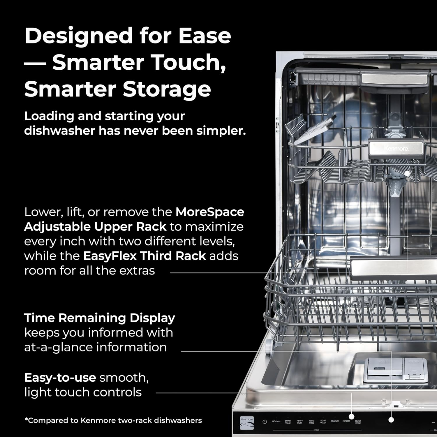 Kenmore 24″ Built-in Stainless Steel Tub Dishwasher EasyFlex 3rd, SmartWash, UltraWash Plus, TurboDry, Adjustable Rack, Energy Star Certified, Fingerprint Resistant