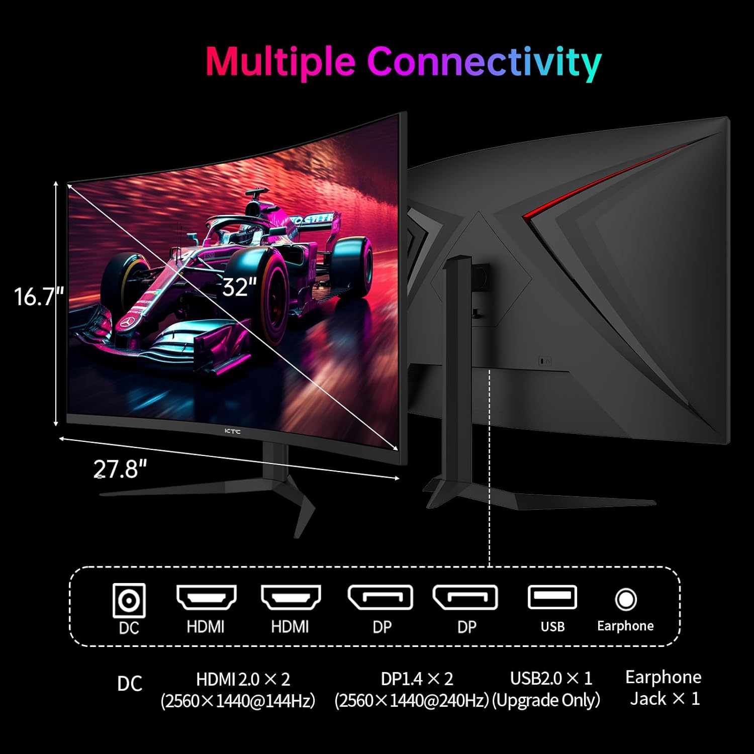 Curved Gaming Monitor: 1000R curvature brings the gaming world to life, immersing gamers in it. The large 32-inch display is aimed directly at the viewer, matching the curvature of the human eye.