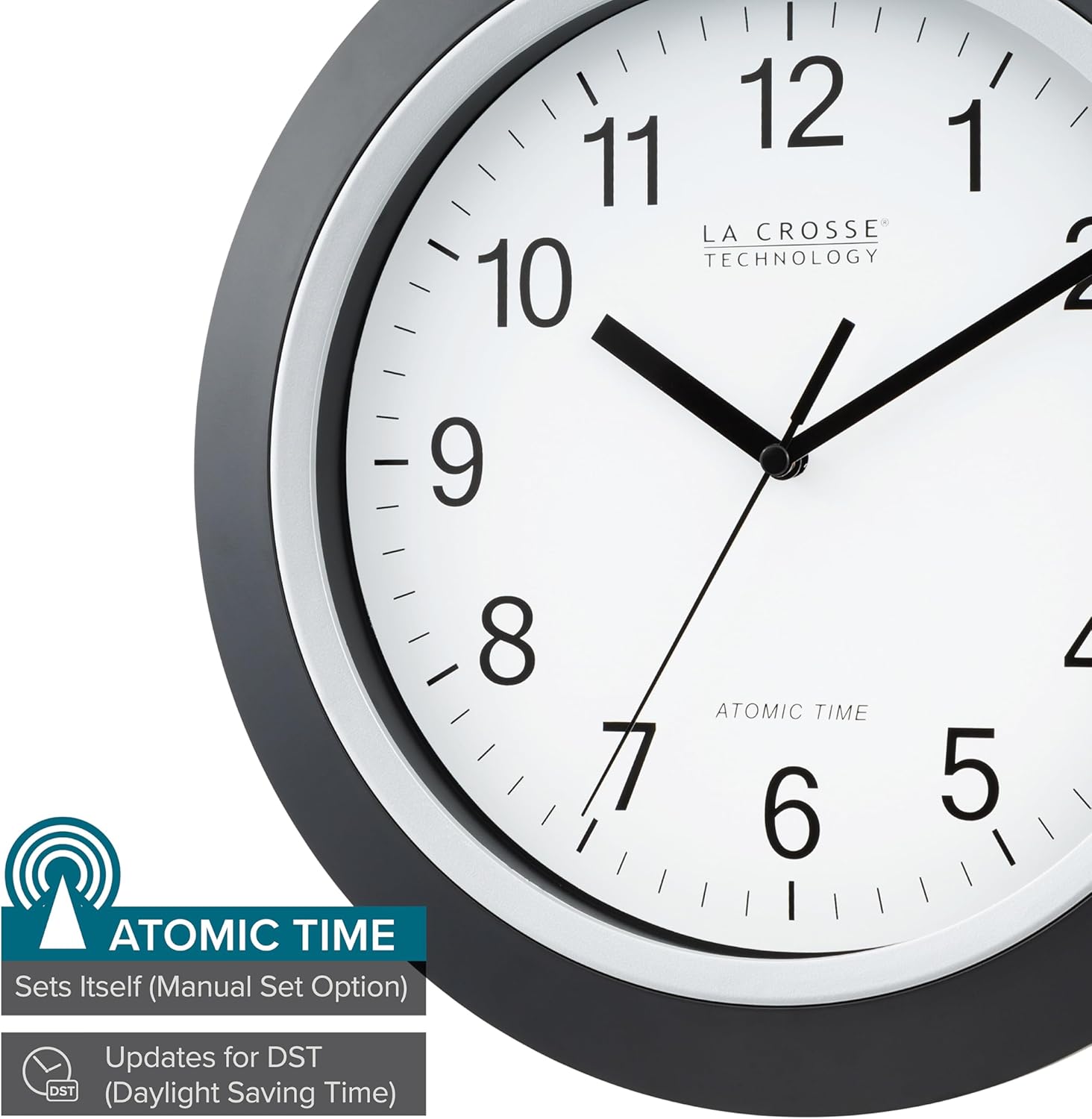 Remove the hassle and worry if your clock’s time is correct, with La Crosse Technology’s Atomic Wall Clock. This 12″ self-setting, radio-controlled analog clock automatically sets to the exact time and keeps it accurate to the second. It has four time zone settings, and it automatically updates for Daylight Saving Time (on/off option). Operating this wall clock is easy. Simply insert one AA alkaline battery into the clock. After the signal is received, press the Time Zone button to set your time zone. Use the manual reset button if you need to readjust the clock, if you are outside the 2,000 mile distance from the signal (located in Fort Collins, CO.) Convenient extra battery compartment for two additional AA batteries to extend the clock’s power up to 5 years. This convenient wall clock has a stylish black frame and an easy-to-read analog face. Its simple style will complement almost any room.