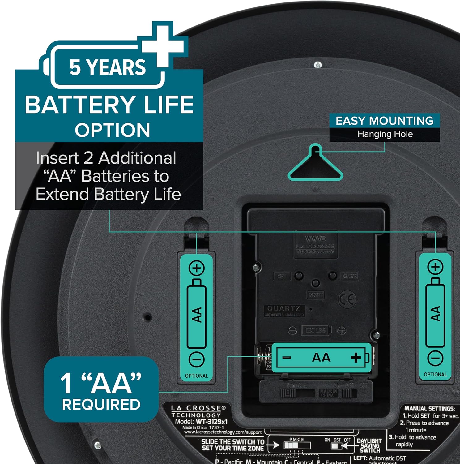 [5-Year Battery Life] – A quality set of 3 “AA” batteries will keep the clock running for up to 5 years – an impressive feat offering unparalleled convenience and peace of mind.