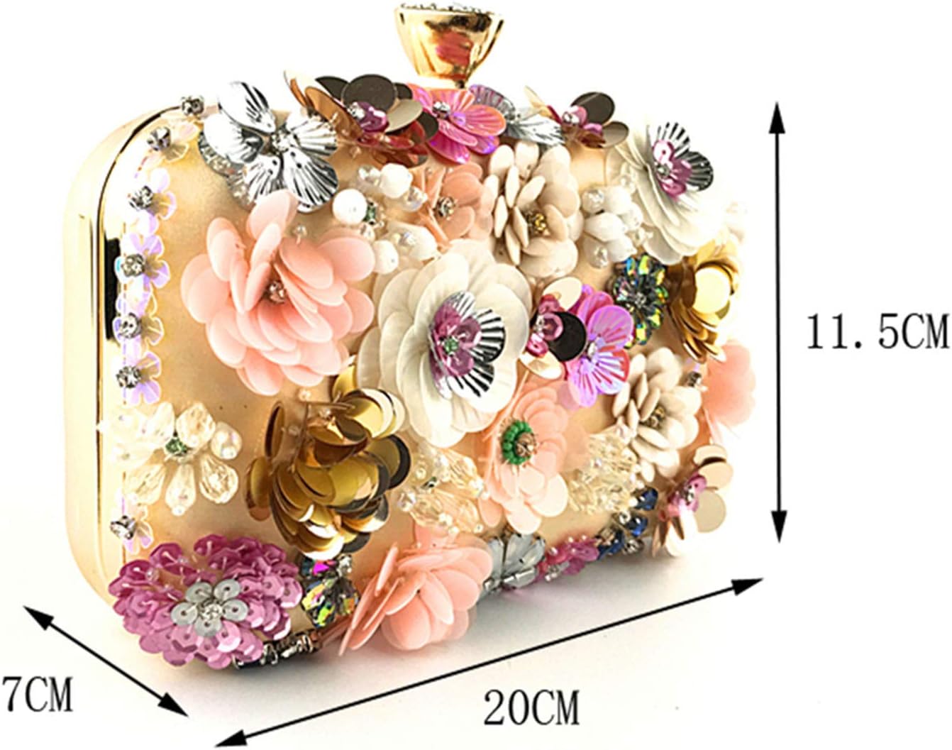 Decorated by multicolored 3D flowers (such as glitter sequins flowers, crystal flowers, beaded flowers). All of them are sturdy sewing on the elegant clutch purse .