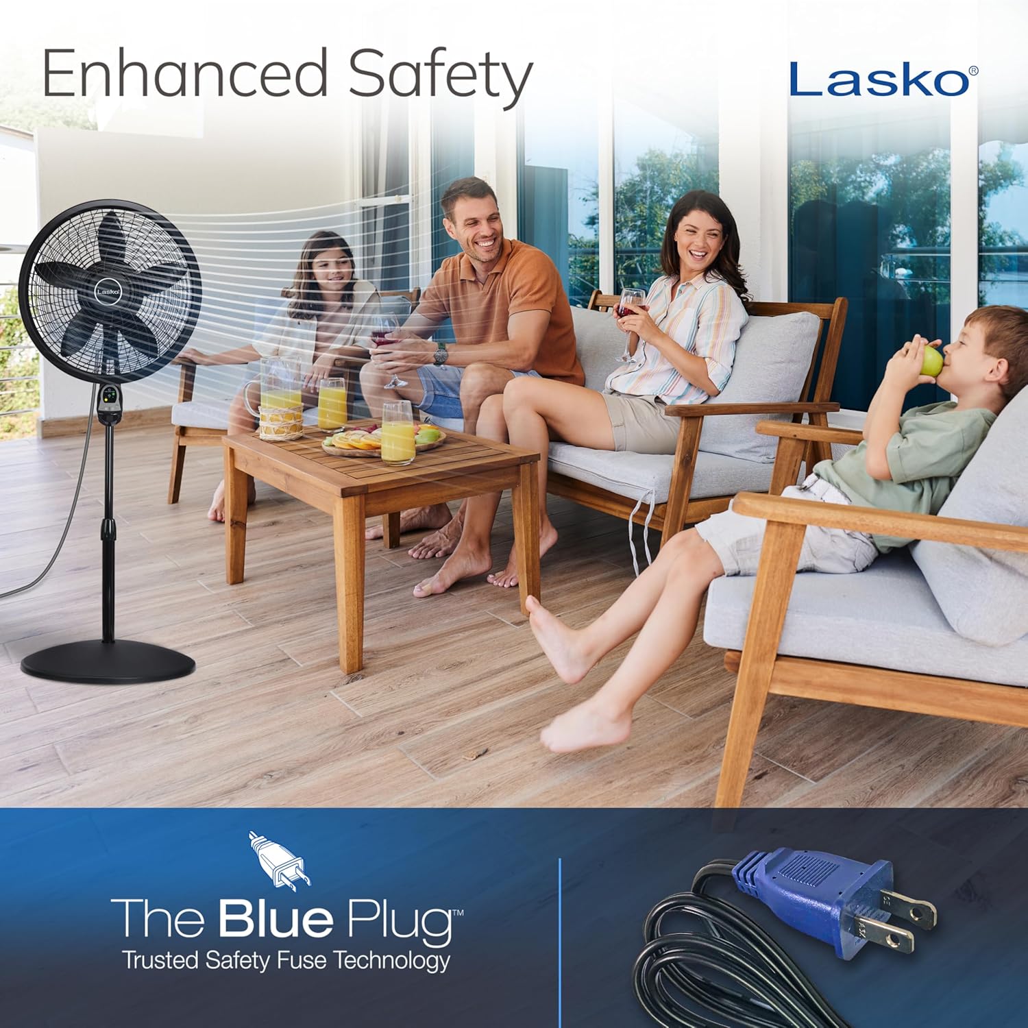 BUILT-IN SAFETY FEATURE: The Lasko fan’s Blue Plug cuts off the electric current if a hazardous fault is detected, providing safety in your pedestal fan with remote or oscillating fans for indoors