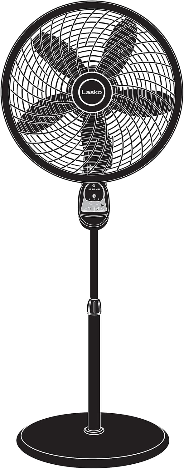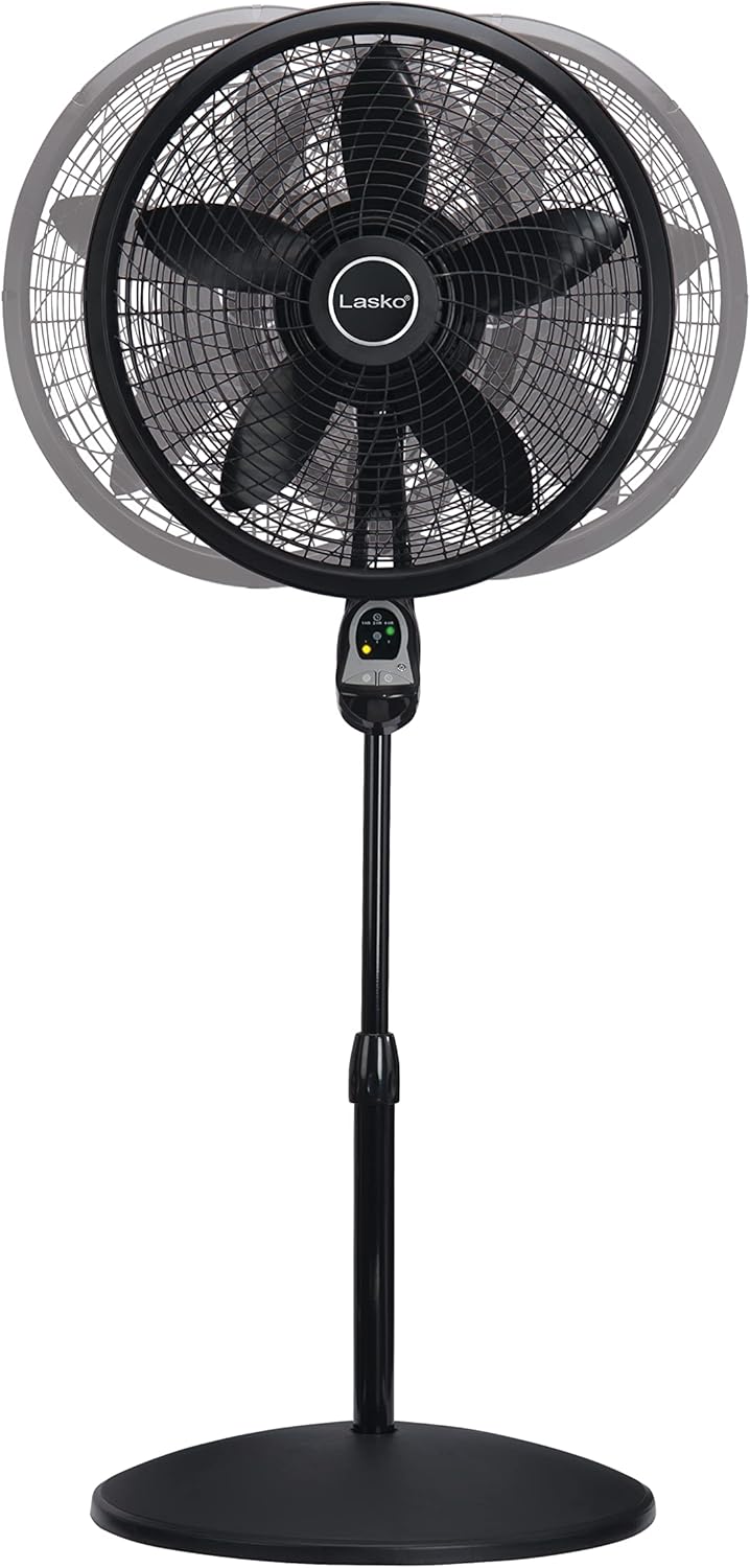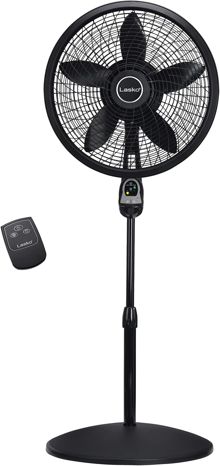 The ideal fan for living rooms, bedrooms & more. With 3 quiet speeds and widespread oscillation, this fan will help you feel cooler and more comfortable throughout the year. Great looking and capable of cooling the largest home spaces, this black pedestal fan from Lasko features a tilt-back fan head for directional airflow control and fully-adjustable height up to 54″. The included remote is easy to use and allows you to control the power, fan speed, and timer functions. Simple ‘no tool’ assembly.