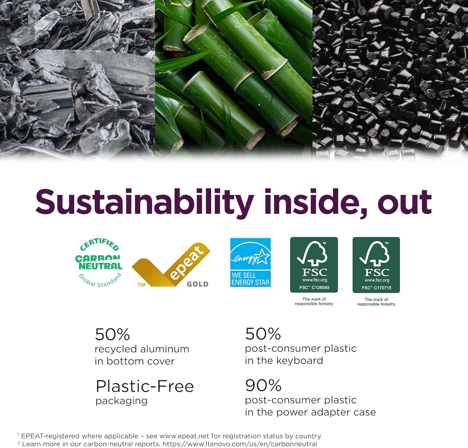 Meet the Lenovo Slim 7i Aura Edition, engineered for those who want to elevate their tech game. This 14″ OLED laptop features Smart Experiences exclusive to Lenovo’s Aura Edition devices, including Smart Modes to optimize performance and Smart Share for seamless connections. With the Intel® Core™ Ultra processor for effortless multitasking, full ports including HDMI, and all day battery life, it’s perfect for your on-the-go hustle. The unibody chassis, crafted with exclusive aluminum techniques, keeps it lightweight and durable. The latest Intel® Core™ Ultra processor fuels helpful AI experiences such as productivity assistants, text and image creation, and collaboration effects to make everything you do easier and faster. Enjoy jaw-dropping clarity and true-to-life color with DisplayHDR True Black 500, 600 nits peak brightness, and WUXGA resolution at 60Hz for sharp, fluid motion. TÜV Low Blue Light certification reduces eye strain without sacrificing its unmatched color accuracy. Get more done with Lenovo’s AI-powered apps, crafted to fit intelligently into your life and adapt to your needs. These apps go beyond just making tasks easier—they offer personalized experiences, boost your productivity, and keep your data secure and protected. Smart design goes beyond just its features, it’s also certified Carbon Neutral, built with recycled materials, and packaged completely plastic-free. The Lenovo Slim 7i Aura Edition is sustainable for your lifestyle and for the planet.