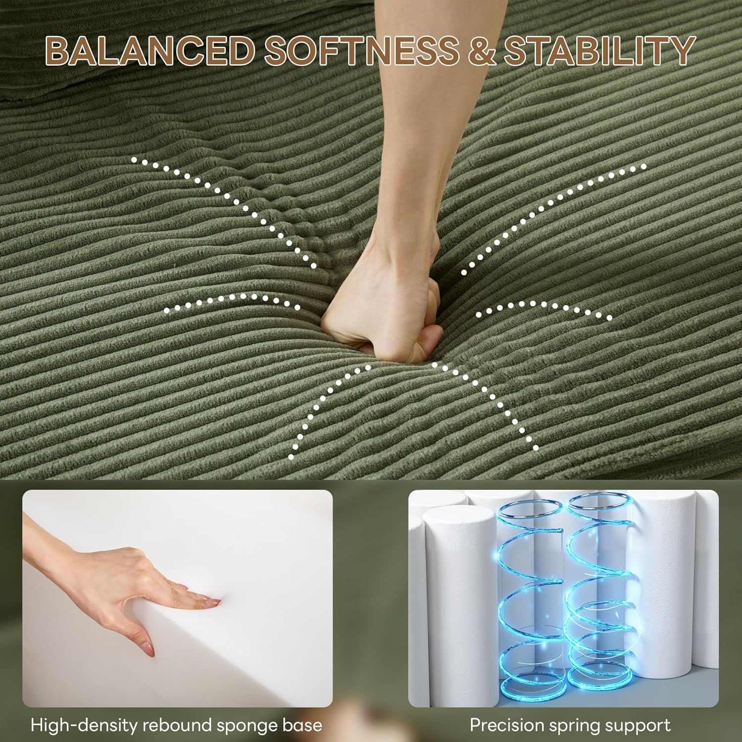 1 Premium Foam 2 Full Body Support 3 Cozy Corduroy Fabric